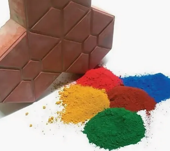 - Металлические. Этот вид пигментов для бетона является самым распространённым. Они производятся путем переработки металлов и представляют собой порошок определённого цвета. Как правило, это оксиды железа, титана, хрома, алюминиевая пудра, цинковая пыль и прочее.