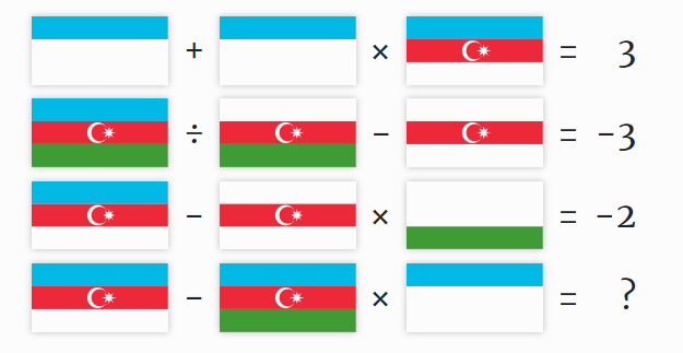 Новая затея на нашем канале! Теперь мы предлагаем вам решать головоломки не с гербами городов, а с флагами стран! Будет все так же интересно, обещаем. Итак. Дано: 3 неизвестных элемента с уникальными целыми числами от −9 до 9. Задача: вычислить результат последнего уравнения. Ответ на последней картинке. А больше загадок - на нашем сайте! Заходите, всегда вам рады.