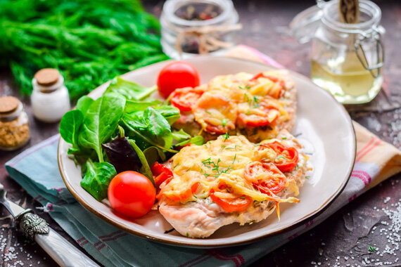 Отбивные из индейки с сыром и помидорами - простой рецепт