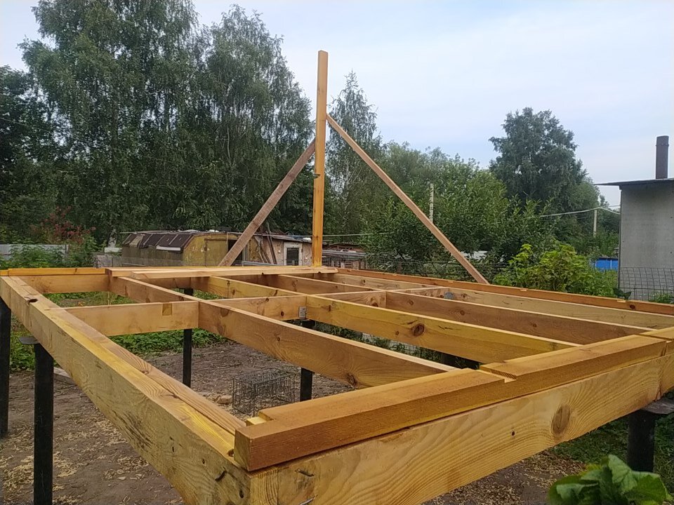 Прошло наверное 2 недели, как начали собирать каркас бани (наверное, так как, что то в в голове только одни воспоминания, встал кофе, завтрак, кофе, циркулярка, фрезер и молоток... много молотка, рука почти уже не болит по вечерам, кроме пальцев другой руки :)) Сначала начали собирать занную стенку от входа, так как работник один и классически сбор стены (когда на полу собирают и потом поднимают) не подходит (один просто не поднял, а родители в силу возраста просто не справились бы), то решили пойти своим путем. Прибили к "цоколю" нижнюю доску, поставили вертикальные стойки Все вертикальные стойки ставили в пазы, потому как тратится на уголки жутко давила жаба (да и еще с повышением цен на металл и не только). И потихоньку начали собирать стенку. Выточки под горизонтальные балки делали фрезером, глубиной 10 мм, поперечины выпиливал ручной циркуляркой с глубиной 50 мм, запиливал и потом выламывал остатки и чистил стамеской. Ну и собирали потихоньку стены Сборка велась на сотые гвозди, в