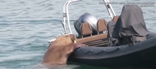 Морж на ирландском побережье топит лодки. Ему подарят плавучий диван!