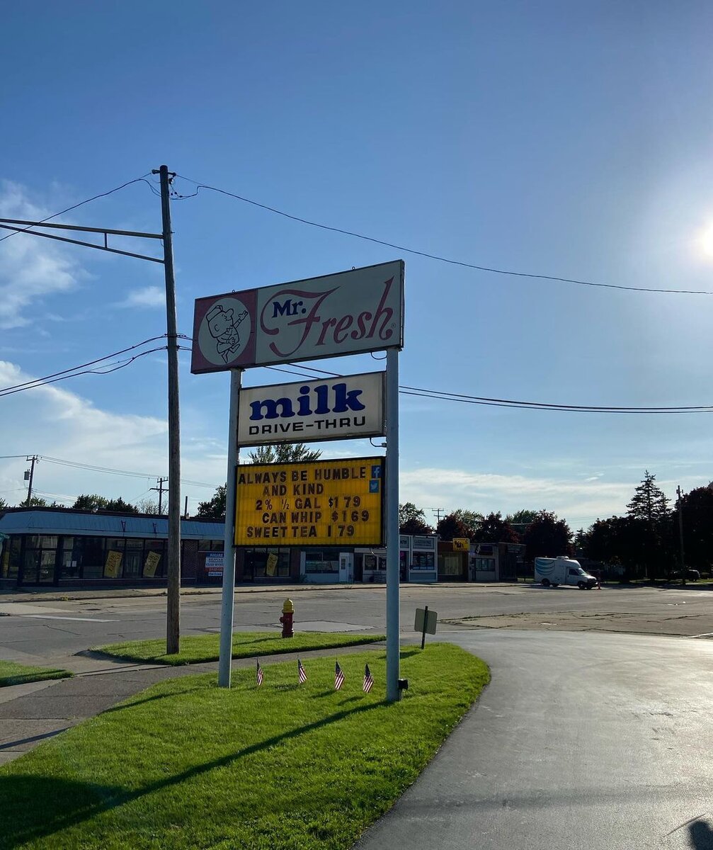 Вот такие маленькие молочные drive through магазины есть в каждом маленьком белом районе Америки, а почему? А потому, что в 20ом столетии годах 50х когда стала зарождаться идея об «американской мечте», когда у тебя есть дом, семья, машина и работа люди образовывали райончики, где есть только дома, а значит за едой нужно ехать в ближайший магазин, который в принципе то далеко и не с руки, когда тебе нужно только молоко или хлеб. Так вот ибо дома в средней американской семьи два ребёнка то жена готовя завтрак понимала что не хватает всем молока или хлеба и говорила мужу ехать за хлебом, а мужики ленивые и по этому просто построили маленький магазинчик, где всегда будет молоко и хлеб и каждое утро они ездили или ходили в тот магазинчик, что бы не тратить время.