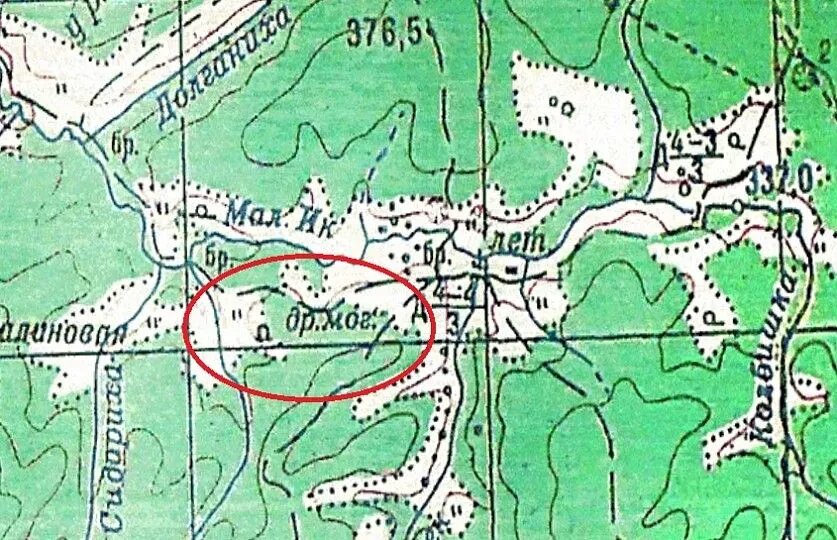 Изучая карту Тогучинского района, на берегах таежной речки Малый Ик геокэшеры обнаружили странный топографический символ – «др. мог». По системе условных обозначений на картах это означает памятники, монументы, братские могилы, туры и каменные столбы высотой более 1 м. Находится это обозначение недалеко от села Дергоусово. Участникам игры предлагается самим найти древний объект по координатам, взятым с бумажной карты (главное фото).