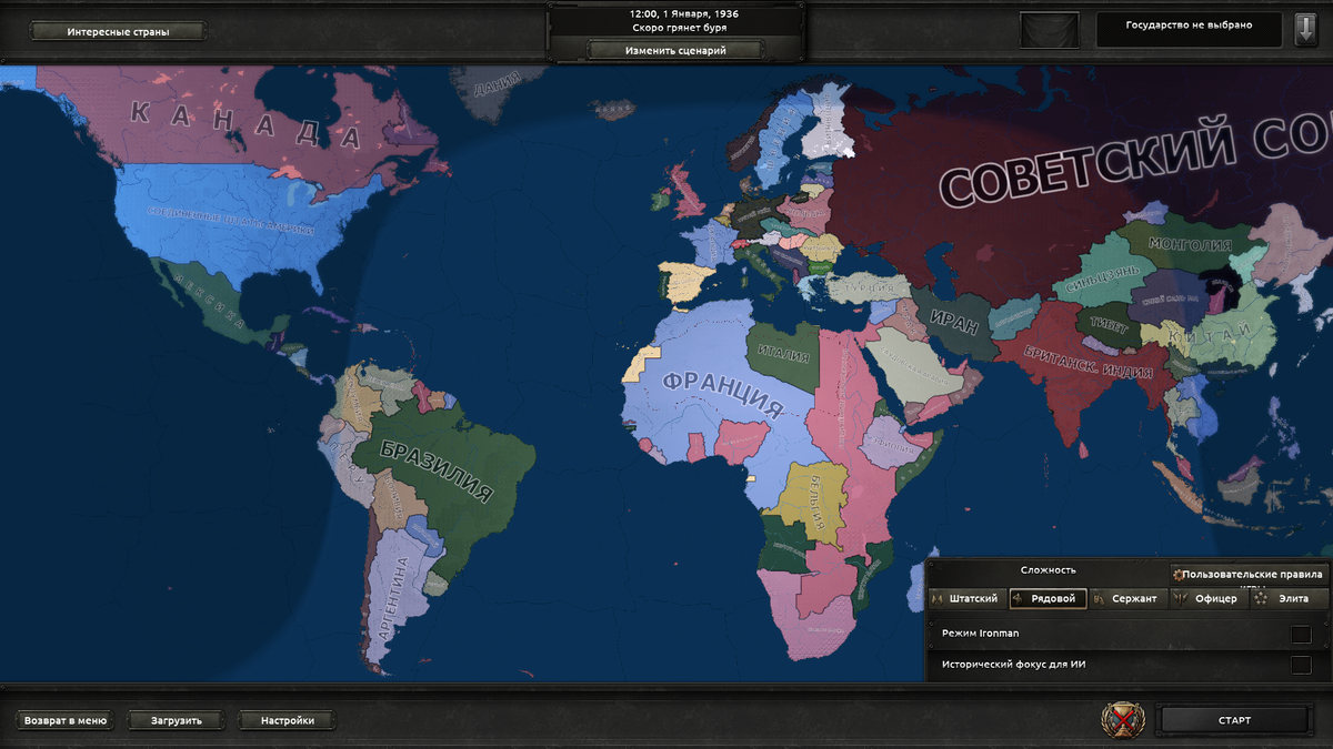 - Второе, и самое прекрасное, это - выбор любой державы. Вы можете начать играть, как за "крупное" государство, так и за "очень маленькое" государство. Например, можно начать игру за Люксембург, которая полностью окружена сильными державами. Или начать за Третий Рейх, и пойти по иному сценарию, без объявления тотальных войн и быть мирной державой.