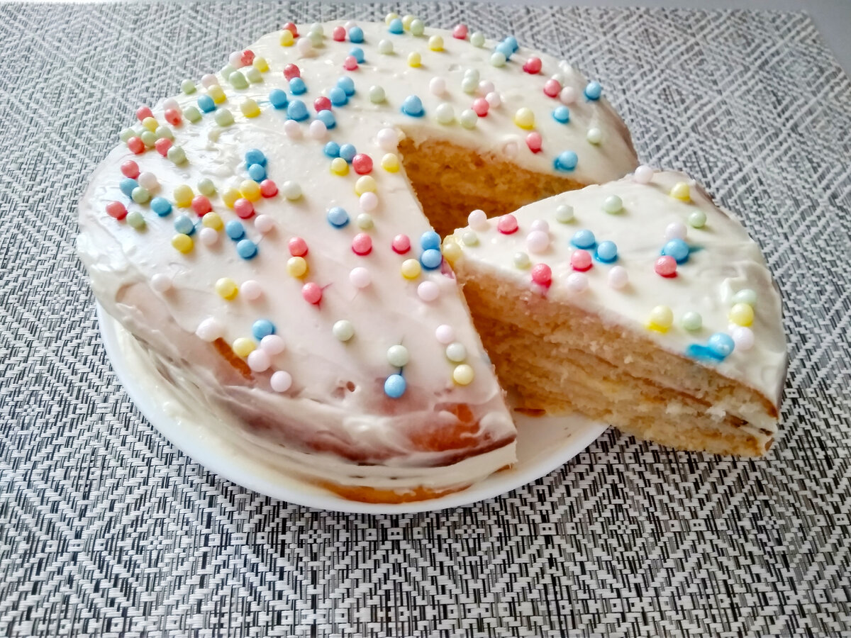 Привет, друзья! Порадуйте свою семью потрясающим, нежным и очень вкусным тортом, который готовится просто и самое главное быстро. В глубокой миске взбиваю миксером сгущенное молоко (190 мл.) с 1 яйцом и с растопленным сливочным маслом (30 гр.) до однородной массы. В отдельную миску просеиваю муку (90 гр.) и разрыхлитель для теста (8 гр.) и добавляю к ним 3 гр. соли.