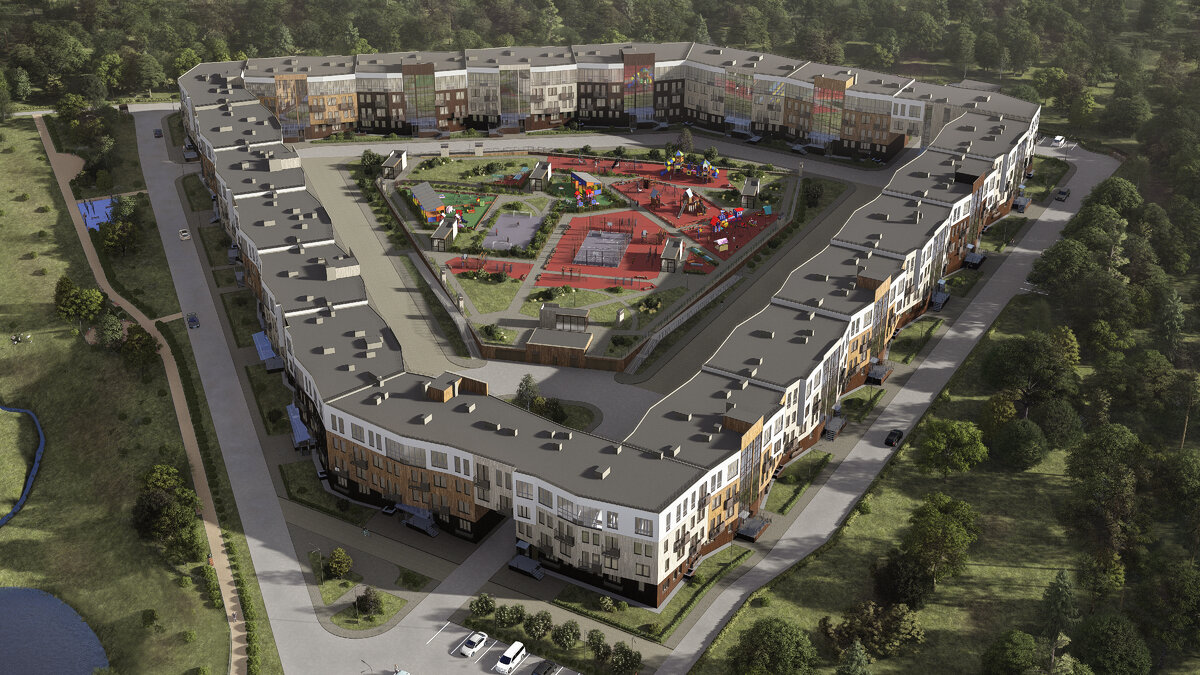 - Концепция «Двор без машин». Закрытая придомовая дворовая территория жилого комплекса свободна от автомобилей. Действует просторный подземный паркинг.