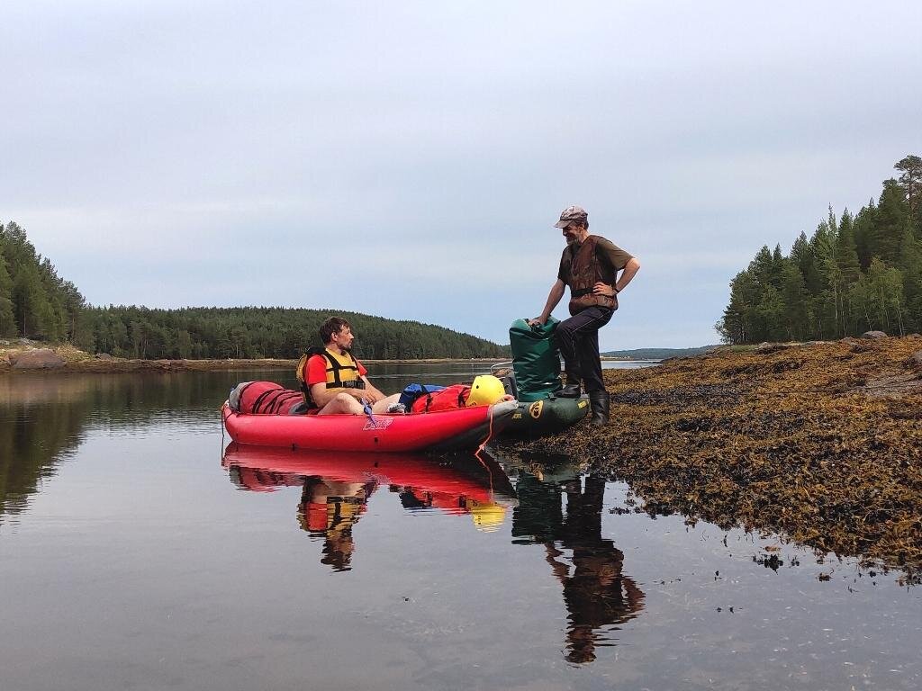 Мир тесен – это банально, но так оно и есть. Вернее, как говорят, не мир тесен, а прослойка тонка. И действительно, куда ехать водному туристу летом: заграница закрыта, на Кавказе воды мало, остается Сибирь и Карелия. Помнится, когда мы ездили в Карелию летом на поезде, то большая часть вагонов была забита туристами с их рюкзаками, гитарами, канами и карабкающимися по всем поручням детьми. И порой в Карелии встречаешь людей, которых давно не видел, или которых не видел никогда, но знал об их существовании. В этом году таких встреч случилось две. Первая произошла в Чупинской губе, когда мы проплывали мимо грузившего вещи в байдарку туриста, и вдруг Игорь повернул к берегу и сказал: «Виктор, неужели это Вы?» В общем, это оказался знаменитый путешественник Виктор Рогов, который ведет канал на YouTube и создал конструктор маршрутов по Карелии. Этот конструктор мы как раз смотрели перед поездкой, думая о возможности пройти по озерам и выйти в Воньгу. В этот раз Виктор шел Чупинскую кругосве