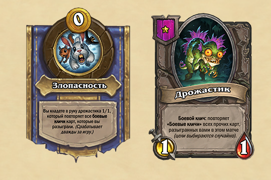 Изменения режима «Поля сражений» До изменений: «Злопасность» [Стоимость: 1] Ваш следующий «Боевой клич» на этом ходу срабатывает дважды. → После: «Злопасность» [Стоимость: 0] Вы кладете в руку дрожастика 1/1, который повторяет все боевые кличи разыгранных вами карт. (Два раза в матч). До изменений: [Пассивный эффект] После того как вы продаете существо, случайное существо в таверне получает +1/+1. Срабатывает дважды. → После: [Пассивный эффект] После того как вы продаете существо, случайное существо в таверне получает +1/+1. Срабатывает три раза. До изменений: [Пассивный эффект] После того как вы продаете мурлока, добавляет случайного мурлока в таверну Боба. → После: [Пассивный эффект] После того как вы продаете существо, добавляет случайного мурлока в таверну Боба. До изменений: [Стоимость: 1] Отправляет существо из таверны Боба в спячку. Через 3 хода вы получаете его с +1/+1. → После: [Стоимость: 1] Отправляет существо из таверны Боба в спячку. Через 3 хода вы получаете его с +2/+2