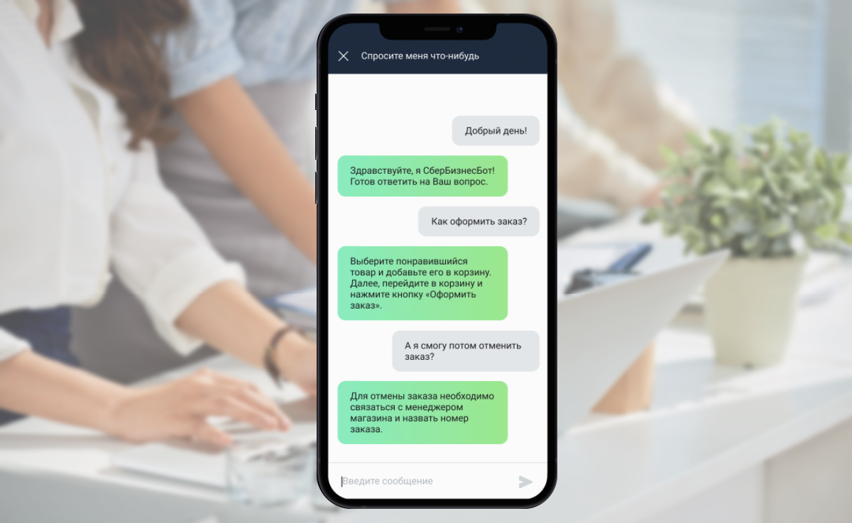 Бот может рассказать про детали оформления заказа, условия доставки или возврата. Всего у СберБизнесБота более 75 готовых сценариев, а при необходимости можно настроить свои.
