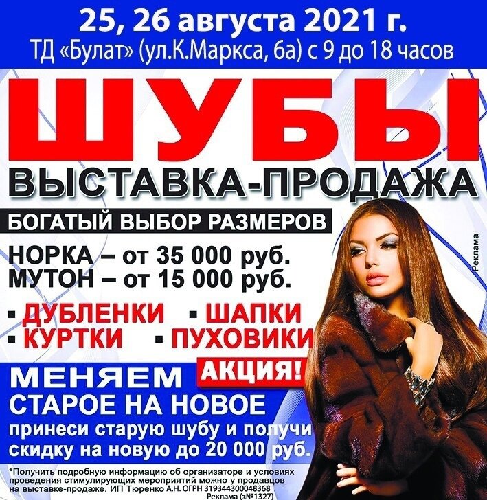 ✅ 25 и 26 августа выставка-продажа шуб.