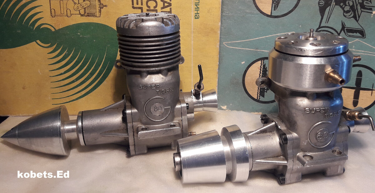 Приветствую!!! Ранее я рассказывал о итальянских суперах с дисковым распределением рабочей смеси серии Ж 15 РВ и Ж 29 РВ выполненных в скоростном варианте. Теперь на очереди --скоростная десятка . Выпуск этого двс начался в 1969 г. Двигатель Супер Тигр Ж 60 РВ SPEED был рассчитан на установку резонансной трубы ( в комплект не входила ) . Через год после его выхода появился судо вариант с рубашкой водяного охлаждения и маховиком . В СССР двигатель применялся в авто и судо моделизме ( иностранные национальные классы применяют скоростную десятку в авиамоделизме ). Скоростная калильная десятка имеет рабочий объём 9,95 кб.см.. Ход поршня 22 мм , диаметр цилиндра 24 мм. Пара АВС. Продувка поперечная. Двс имеет настроенный выхлоп. Картер в районе выхлопного окна имеет резьбовые отверстия для установки резонансной трубы. Двс имеет съёмный носок, в котором в подшипниках качения вращается вал. На вал , в зависимости от модели , устанавливают обтекатель воздушного винта или маховик. На