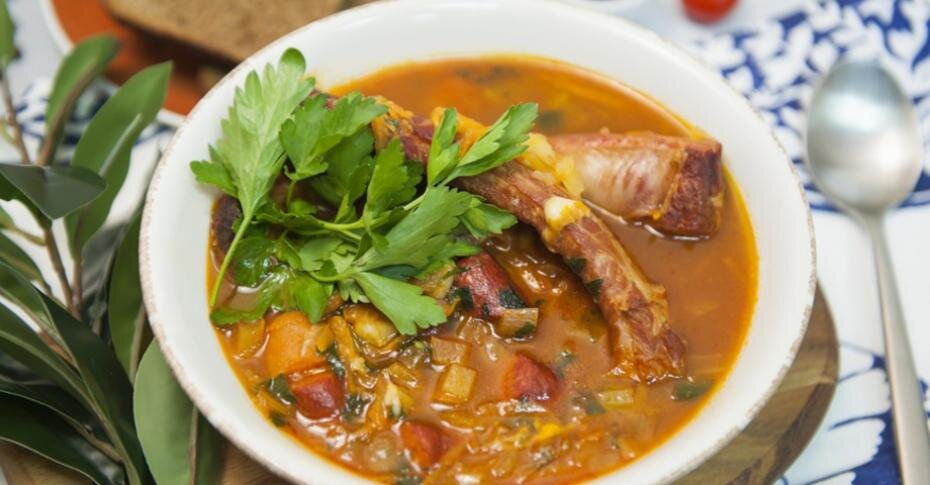 соль Способ приготовления 1. Нарезаем картофель мелким кубиком и подвариваем в говяжьем бульоне. Добавляем копчёные свиные рёбра, провариваем. 2, Приготовим поджарку. Нарезаем лук средним кубиком, разогреваем сковороду с добавлением 50 мл растительного масла и обжариваем. 3. Тмин растираем в ступке с солью, добавляем к луку, тушим всё вместе, добавляем томатную пасту и тёртую морковь. 4. Вливаем в бульон тёмное пиво, добавляем поджарку и крупно нарезанные охотничьи колбаски. Доводим до кипения, выпариваем алкоголь, добавляем сельдерей, нарезанный мелким кубиком, и провариваем. 5. Нарезаем твёрдый сыр крупным кубиком, добавляем в суп и солим. Заправляем измельчённым чесноком и нарезанной зеленью. 6. Приготовим гренки. Ломти хлеба разрезаем пополам, смазываем растительным маслом, посыпаем тмином с солью и запекаем в духовке. 7. Подаём суп с ржаными гренками, украсив петрушкой. Приятного аппетита! Еще больше рецептов на сайте tveda.ru Любите читать Дзен Телеканала «Еда