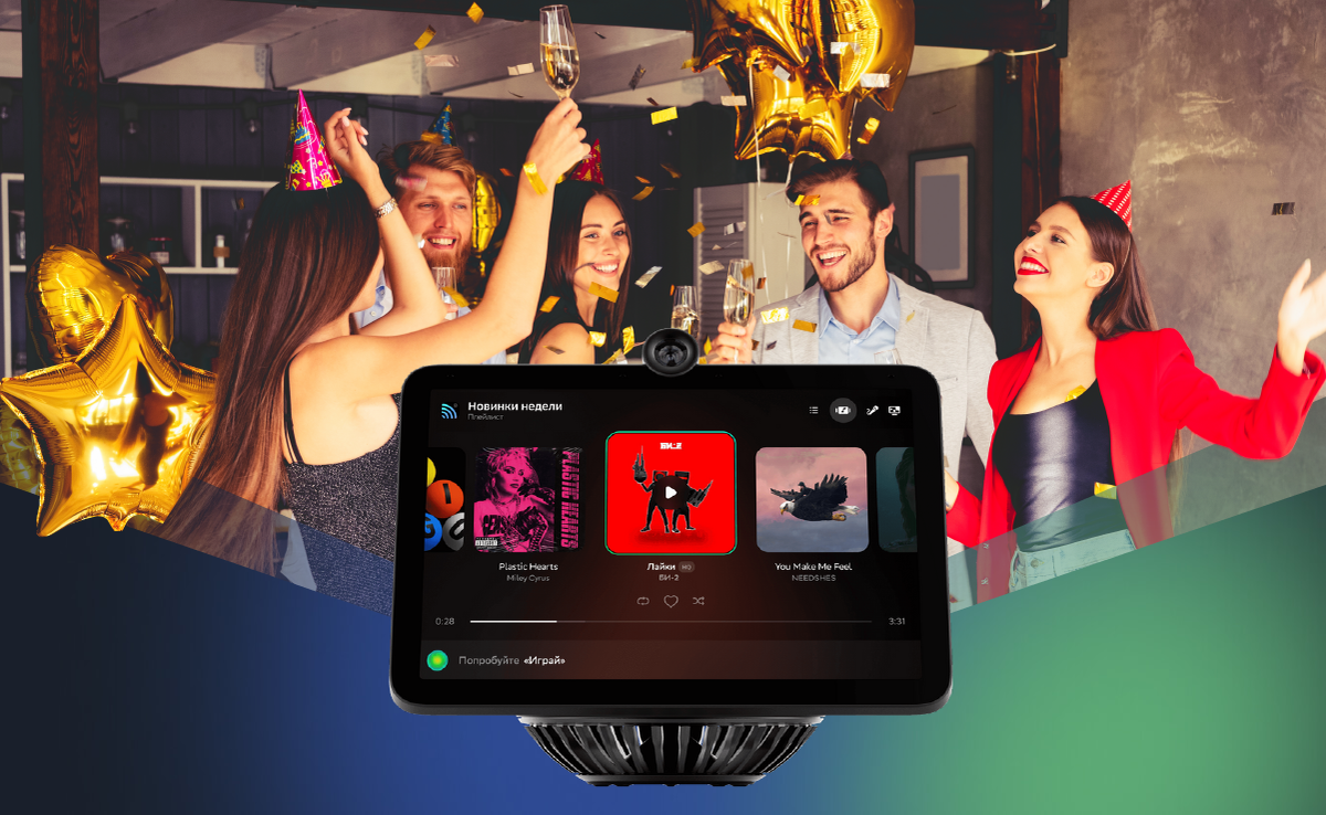 Если заниматься организацией домашней вечеринки от и до самостоятельно, то к вечеру вы точно будете как выжатый лимон, а мероприятие рискует превратиться в скучнейшее Wi-Fi party. Только представьте: надо собрать друзей, выбрать тематику, подходящую одежду, игры, музыку, фильмы, заказать еду, в конце концов. Гораздо легче организовать всё со смарт-дисплеем SberPortal. Это гаджет, в который встроены мощные микрофоны и динамики, виртуальные ассистенты и многие другие умные технологии. Ниже рассказываем, как он помогает подготовиться к весёлому вечеру с друзьями. Быстро созвониться с друзьями ❌ Чтобы договориться о встрече, вы бросаете все дела и пишете в общий чат или каждому участнику отдельно.