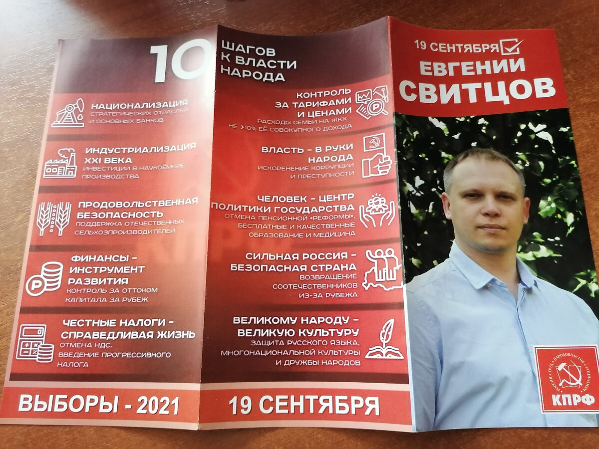 Выборы через месяц, даже уже меньше. Агитация идёт вовсю. Сегодня выловил из ящика буклет и газету КПРФ. Плюс ещё в подъезде висит плакат. Я решил с агитацией познакомиться. Господи Боже ты мой! Что это? Начать с того, что это программа не кандидата в заксобрание области, это, скорее, для думских выборов. Ну это реально вот не уровень областного парламента. КПРФ постоянно на этом проваливается. Какой уровень бреда! "Власть в руки народа" - вообще ни о чём. "Искоренение коррупции и преступности" - начать с того, что это невозможно, в принципе. Можно лишь уменьшить их уровень. А как коммунисты будут "искоренять" - напоминать надо? "Многонациональная культура" - что это?! Есть три вида - народная культура, национальная культура и мировая культура. "Многонациональной" не существует в природе. Да и Россия тоже не является "многонациональной". Да и все пункты плана, практически, не входят в компетенцию ЗСО. Никакой конкретики, привязки к областным реалиям, к проблемам округа (про них в