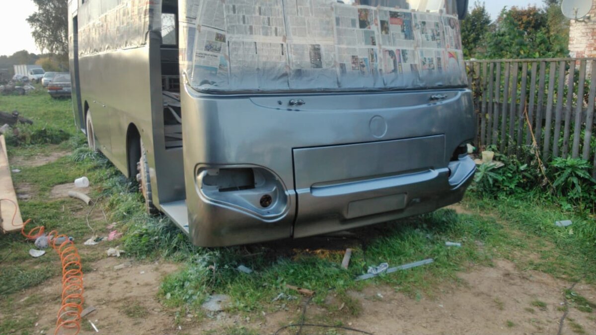Дорогие друзья, в прошлых статьях мы показали и рассказали вам про кузове работы. Что мы изменили, как спланировать багажные отсеки, удаление ржавчины и обшивка кузова автобуса железными листами. Данную статью вы найдёте здесь. Самое сложную и тяжёлую работу мы преодолели, теперь начинаем готовить наш автобус к покраске. Т.к он у нас изначально был в белом цвете, он напоминал - рейсовый, хотелось конечно сделать его более креативным, модным, современным и уютным. После долгих обсуждений по поводу цвета, жена хотела серебристый цвет, а я склонился более к белому, светлому, думал, что чем светлее цвет, тем меньше будет нагревается на солнце кузов и легче переноситься жара. Пересмотрев кучу фото и видео автобусов такой марки, конечно они не были разнообразными, т.к полагаем, что это первый автобус такой марки который будет переоборудован в автодом. Нам попалась фотография автобуса, на ней был изображён очень строгий, без лишних ненужных вещей автобус. И стали ориентироваться на это фото.