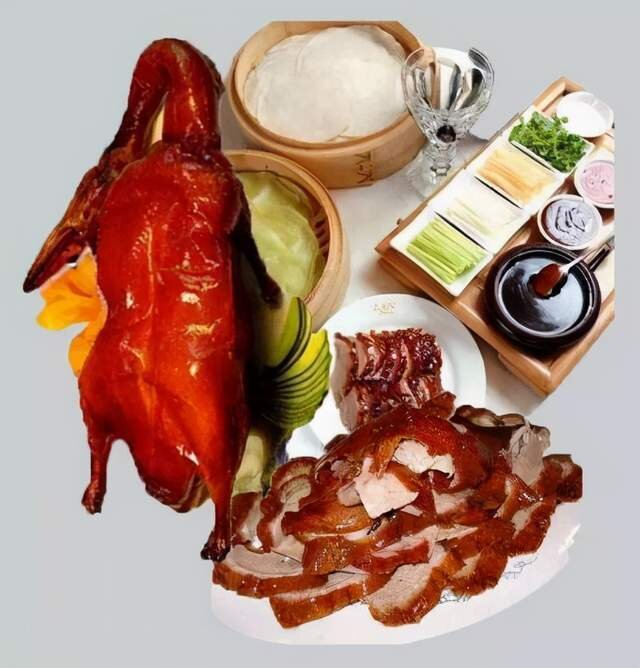 Жареная утка - известное пекинское блюдо с мировым именем. Оно возникло во времена южных и северных династий Китая. Жареная утка упоминается в «Ши Чжэнь Лу», которая в то время была придворной едой. Ингредиенты: высококачественное мясо утки, утка по-пекински, запеченная на углях, красного цвета, не очень жирное мясо, хрустящее снаружи и нежное внутри. Пекинская жареная утка делится на две основные школы, и самый известный пекинский ресторан жареной утки также является представителем этих двух школ. Он известен как «мировой деликатес» за его красный цвет, нежное мясо, мягкий вкус и умеренную жирность.