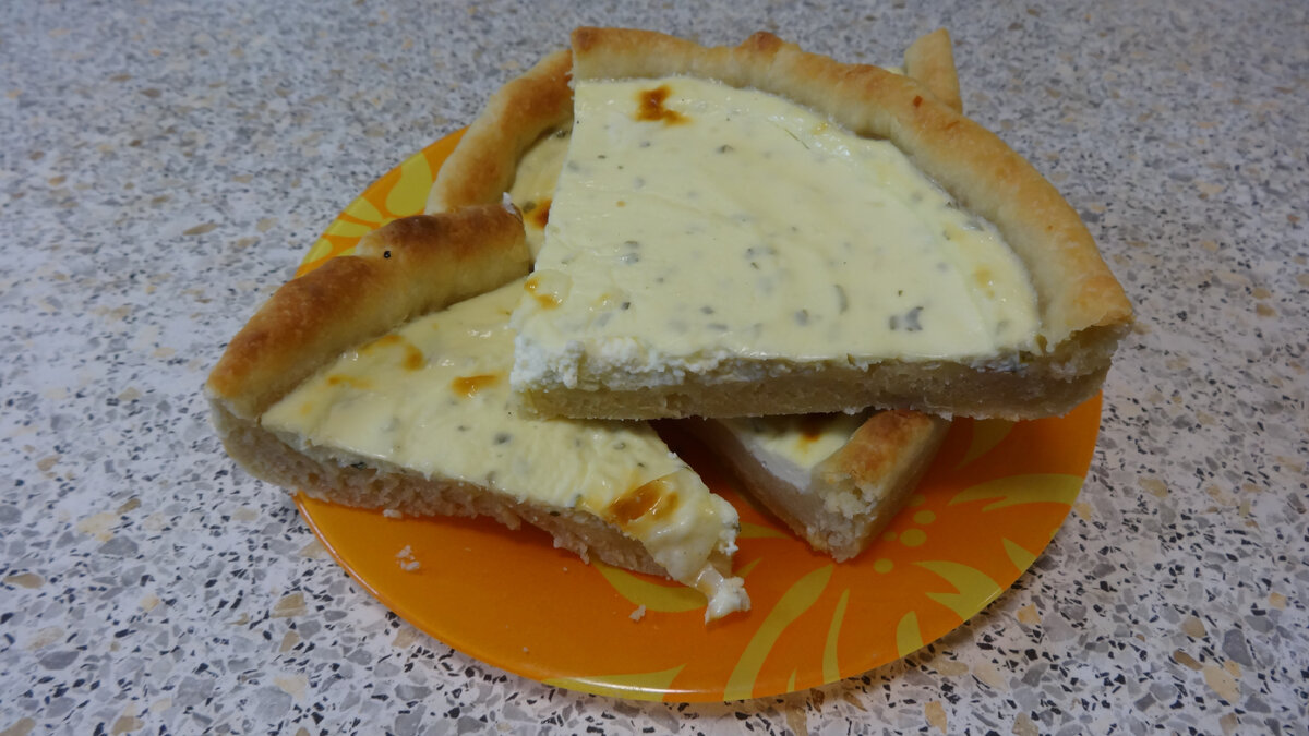 Добрый день мои читатели, подписчики и гости! Пирог исключительно вкусный. Нежнейшая начинка с солоноватым вкусом. Тесто рассыпчатое, хорошо пропечённое, с хрустящими ароматными краешками. Готовится пирог очень просто, его может приготовить даже начинающий пекарь. Но выходит отлично, как у повара-профессионала. Сливочный сыр можно заменить на пастообразный творог с добавлением соли, горчицы и небольшого количества мелкотёртого сыра. В конце публикации как всегда полезный кулинарный совет….. Для теста: 200г сметаны, 3 ст. л. растительного масла (50г), 0,5 ч. л. соли, 2 ч. л. сахара (15г), 1/8 ч. л. соды, 1 ч. л. разрыхлителя, 1 + 3/4 2 стакана муки (280-320г) Приготовить сметанное тесто на растительном масле. На листе бумаги для выпечки тесто раскатать или растянуть руками в круг диаметром 22-24см. Или использовать форму. Для начинки: 100-120г зелёного лука или любой зелени, 150-170г творожного (сливочного) сыра, 1 яйцо, 0,5 ч. л. соли. У меня сливочный сыр уже с зеленью. Любую зеле