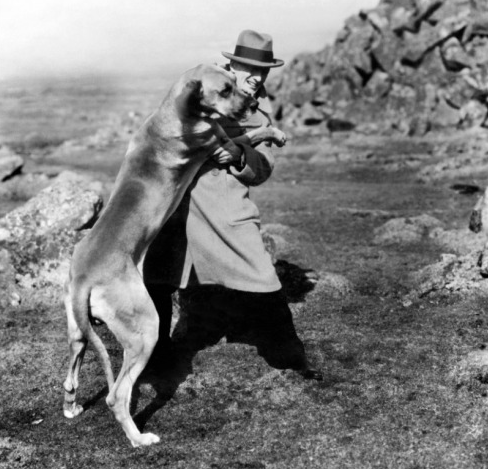 Прежде, чем продолжим вспоминать киновоплощения любимой собачки, давайте обратимся к книге и выясним - а какой породы она, собственно, была. В переводе Натальи Волжиной описание выглядит так : Чудовище, лежавшее перед нами, поистине могло кого угодно испугать своими размерами и мощью. Это была не чистокровная ищейка и не чистокровный мастиф, а, видимо, помесь — поджарый, страшный пес величиной с молодую львицу А на английском фраза звучит так: It was not a pure bloodhound and it was not a pure mastiff; but it appeared to be a combination of the two — gaunt, savage, and as large as a small lioness. Здесь мы видим слово bloodhound, которое означает и совершенно конкретную породу собак - бладхаунд (в переводе на русский - "кровавая гончая"), и абстрактную ищейку. Как я понимаю, переводчики использовали слово "ищейка" потому, что порода бладхаунд не является повсеместно распространенной в России. 3. The Hound of the Baskervilles (1931, Великобритания), режиссёр Гарет Гандри (Gareth Gu