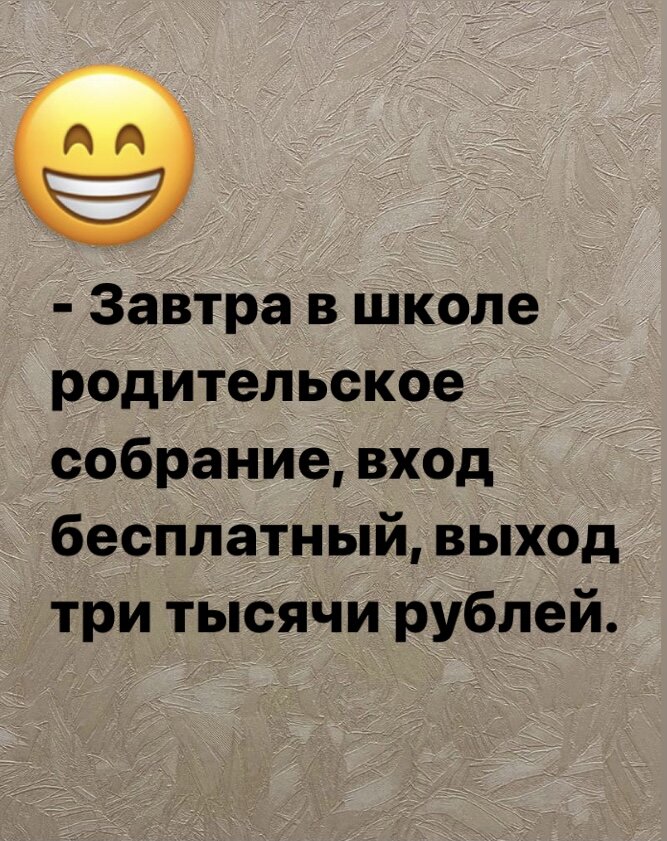 Скоро начало учебного года… Встречайте подборку анекдотов на тему школа. - Мишка, сегодня в школе я получил пятерку, а мама мне за каждую пятерку булочки с маком печет! - Хвастун! Посмотри на свои щеки, сдается мне, что ты круглый отличник! ********** - Сынок, перечисли, что должно быть в твоем портфеле, когда ты идешь в школу? - Бутерброды, много бутербродов! ********** - Папа, ты в школе хорошо учился? - Да! - А в старших классах? - Не успел, забрали в армию! ********** - Сынок, ты уже дома? - Нет, в аду! - Позвони мне, как выйдешь из школы. ********** Муж пришел с родительского собрания. Жена: - Дорогой, насколько раскошеливаться в этот раз? - Сегодня на собрании был отец Миши Скамейкина, его спросили, чем он может помочь школе и где он работает, он сказал, что в прокуратуре, оказалось, что в нашей школе все есть и она ни в чем не нуждается. ********** - Мама, достала меня эта школа, позвони, скажи, что я заболел! - Нет, сынок, доедай кашу и иди на работу, т