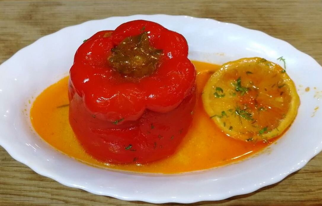 В сезон перца, готовлю фаршированный перец по разному, чтобы удивить и вкусно накормить свою семью. Сегодня хочу поделиться с вами рецептом, который нравится всем кто его пробует. Очень интересно, особенно детям, открывать "крышечку" и доставать вкусный фарш. И так, сам рецепт: 1. Булгур 120 гр. отвариваем на среднем нагреве плиты 15 мин. 2. Перец ( у меня 7 штук) моем, сушим и аккуратно срезаем верхушку, как на фото. Вынимаем семена, чтобы внутри перца не было ничего лишнего. 3. Нарезаем мелко лук и зелень. 4. В фарш ( у меня говяжий) добавляем лук и зелень. 5. Добавляем уже остывший булгур 6. Добавляем к фаршу специи ( перец, соль, кориандр, чеснок), Сливочное масло и томатную пасту и хорошо перемешиваем. 7. Приступаем к фаршировке перцев, мне удобнее делать это маленькой ложечкой, а вы делайте привычным для вас способом. 8. Наполненный перец закрываем крышечкой. 9. Приступаем к готовке заправки. Нам понадобится горячая вода, томатная паста, соль, сахар, растительное масло и вс