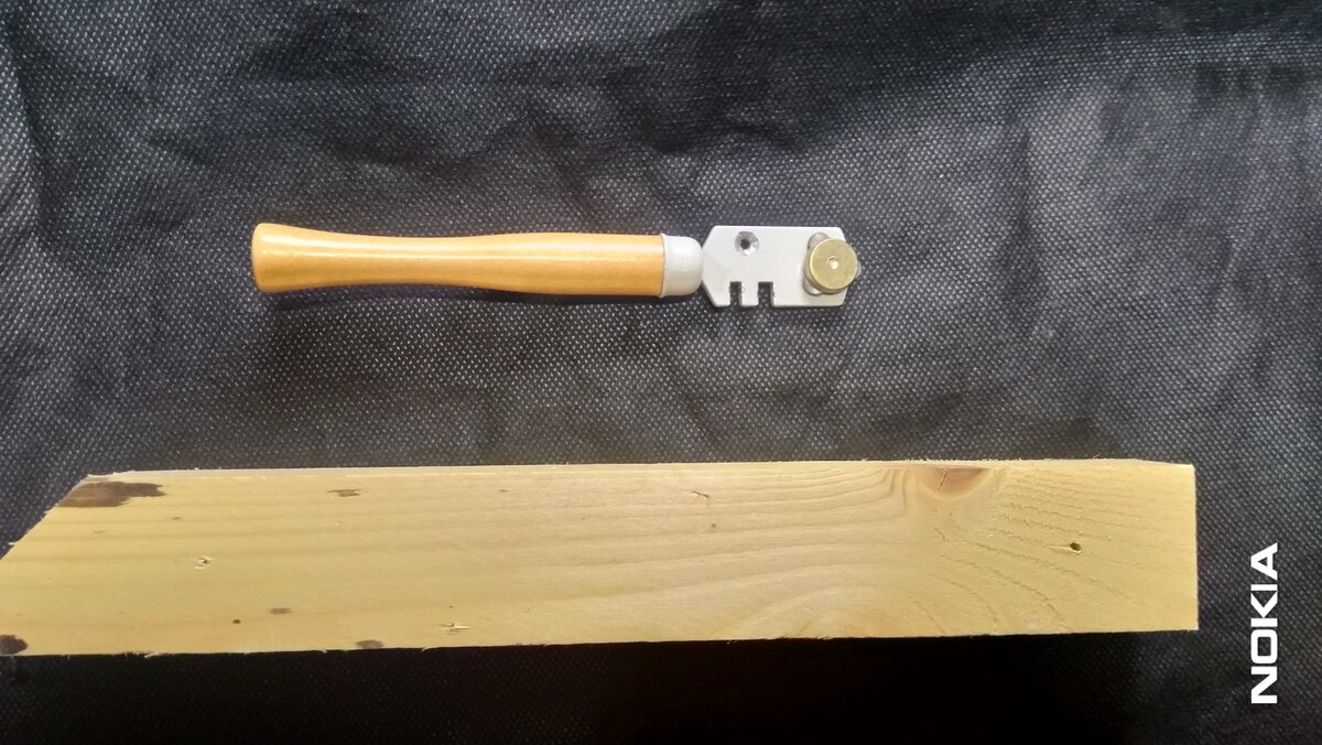 Всем доброго времени суток! Зачем нам нужно дно от стеклянной бутылки или бутылка без дна,спросите вы? Ну например для разного рода самоделок,но об этом в самом конце.Поехали. Обязательно используйте средства индивидуальной защиты (очки,перчатки),стела конечно не летят в разные стороны,но всё же! Покупаем обычный стеклорез,затем находим дома деревянный брусок или кусок доски,высота бруска в дальнейшем влияет на высоту среза. Далее крепким стеклорез к бруску таким образом, чтобы из-за бруска выступала только режущая часть стеклореза. Прикладываем и намечаем будущие отверстия(очень желательно перед вкручиванием шурупов в дерево сделать отверстие тонким сверлом. Далее фиксируем стеклорез саморезами или шурупами Затем фиксируем уже сам брусок к ровной,плоской поверхности. Всё инструмент готов. Берём любую бутылку,ставим на нашу поверхность и прижимая бутылку к режущей кромке,немного давя вниз,вращаем бутылку.Линия должна получиться единой,без смещений.Делаете так до 10 оборотов. Далее кипя