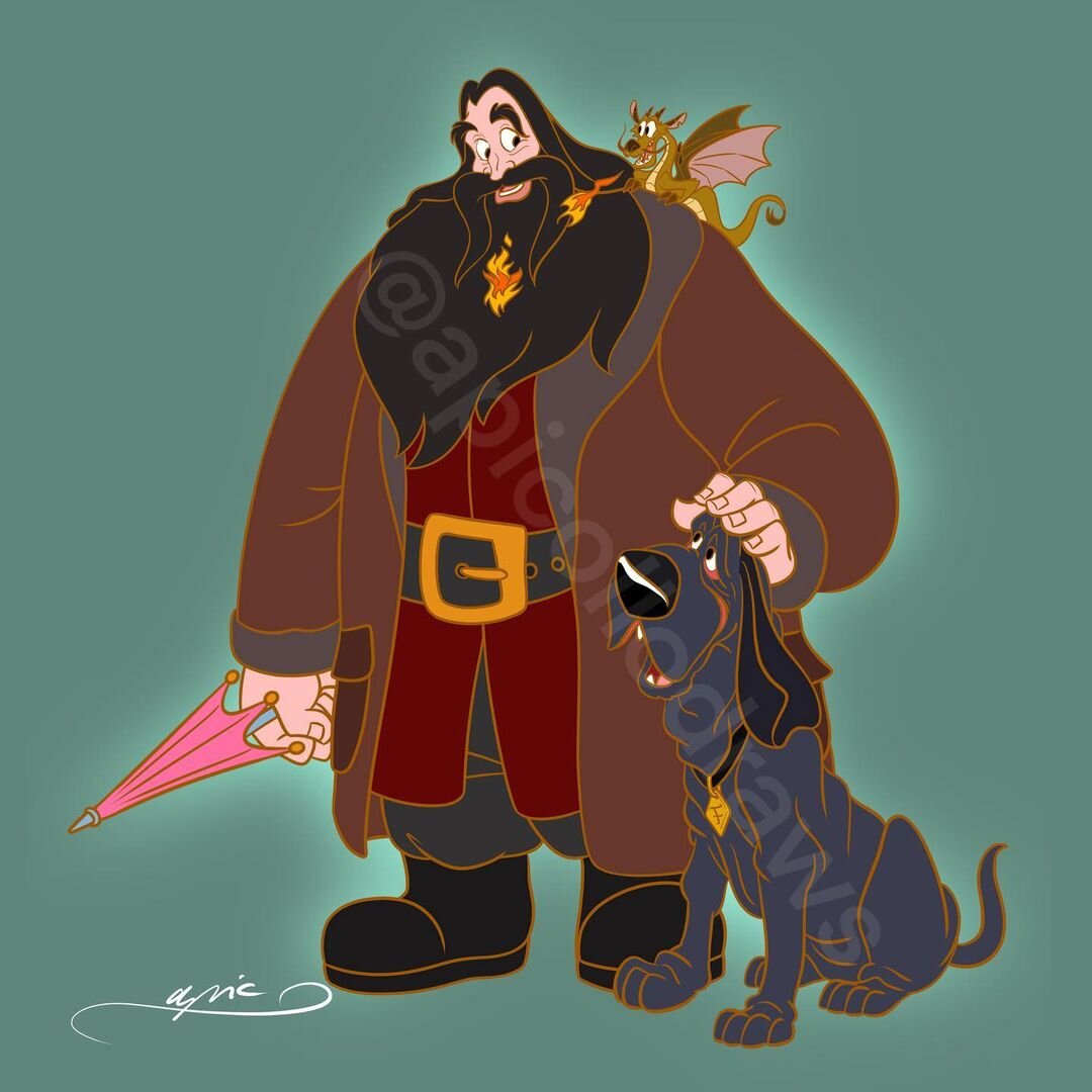 Кем бы герои мультфильмов Дисней были в волшебном мире Джоан Роулинг? Приветствую, студенты-подписчики и просто вольные слушатели нашей Оксенфуртской Академии. Добро пожаловать в третью часть подборки, в которой мы любуемся работам художника под ником Alex Pick, представившего диснеевских персонажей в виде известных героев "Гарри Поттера". Ссылки на предыдущие подборки вы найдете в конце статьи. Приятного просмотра! Король Тритон из "Русалочки" - прямо сказочный аналог Моргана Фримана. Никто не помнит его молодым. Поэтому, вы можете не сразу узнать Тритона в образе Хагрида, с его густой черной бородой и такими же волосами. Компанию ему составляют пёс Верный из мультфильма "Леди и Бродяга" в роли Клыка и неповторимый Мушу из "Мулан", примеривший образ малыша Норберта, благо для этого стоило лишь сменить окрас. Неподражаемая Урсула из "Русалочки" примерила на себя образ вызывающей раздражение при одном только упоминании волшебницы Долорес Амбридж, которую большинство фанатов ненавидит