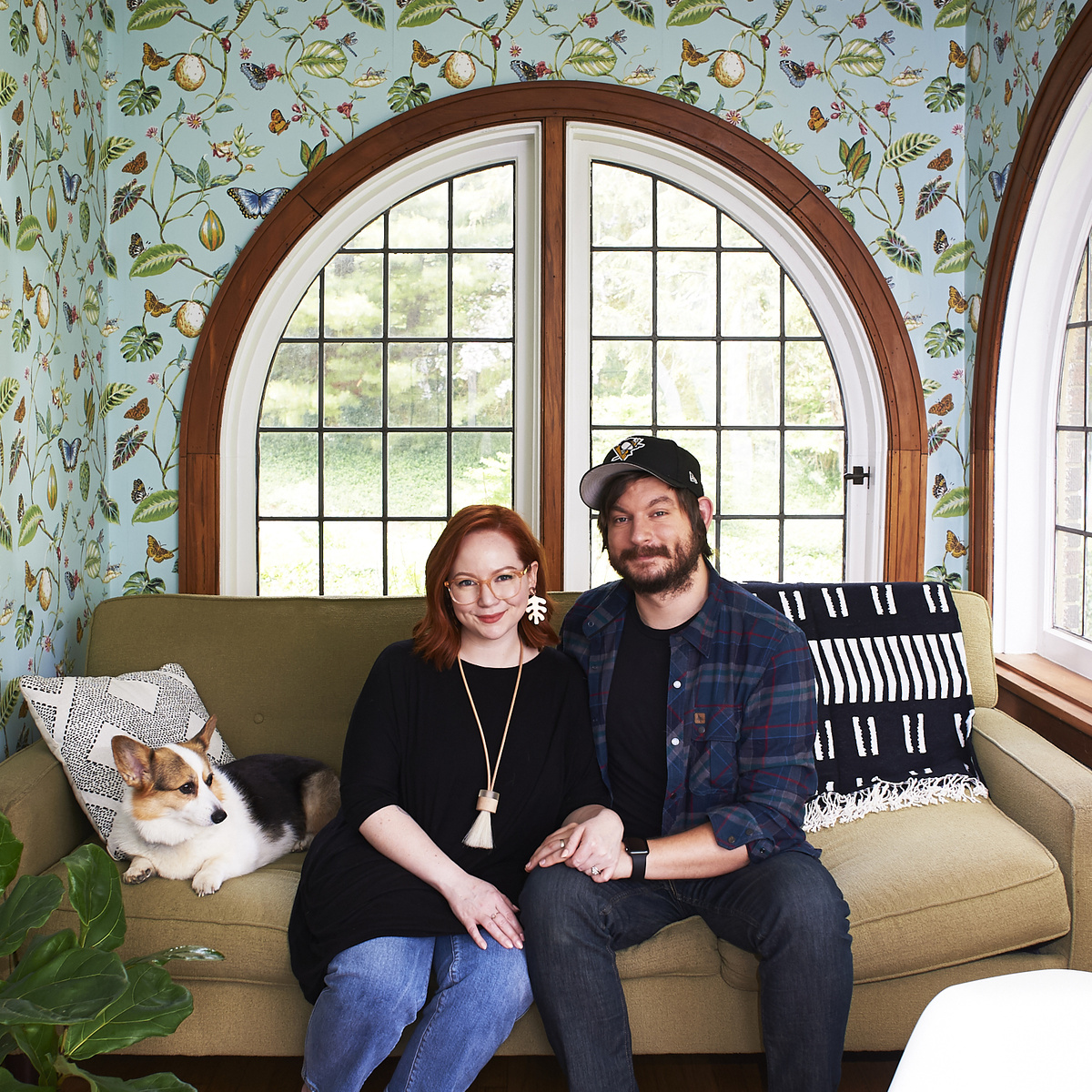 В начале 2017 года Эмили и Энди Коснотти получили ключи от своего первого дома. Он имел неоспоримые преимущества, такие как впечатляющие арочные окна, однако он не был домом мечты. “Мы усердно работаем, над тем, чтобы сделать дом по-настоящему нашим”. Благодаря работе Эмили и Энди, направленной на то, чтобы убрать десятилетия декора и сосредоточиться на архитектуре дома, в этот старинный дом 1929 года уже можно влюбиться, и это только начало... Фотографии Эмили Коснотти Эмили и Энди наслаждаются своей крытой верандой в Питтсбурге вместе со своей корги Пенелопой. Именно уникальные округлые окна вдохновили пару на покупку этого дома, но обои-это актуальная проблема.