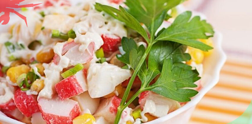 Ингредиенты: Предварительно размораживаем фаланги краба. Перекладываем замороженный продукт из морозильной камеры в холодильник. Затем кладем на бумажные полотенца. После того, как мясо краба разморожено, отделяем мясо от панциря и нарезаем кубиками. Отвариваем яйца, даем им остыть, очистим от шелухи и нарежем кубиками. Огурцы помоем и нарежем соломкой. Лук измельчим. Берем миску, кладем все подготовленные ингредиенты, добавляем кукурузу. Солим, перчим, заправляем майонезом и хорошо перемешиваем. Блюдо готово. Приятного аппетита! Источник: https://wildcrab.ru/news?id=1228