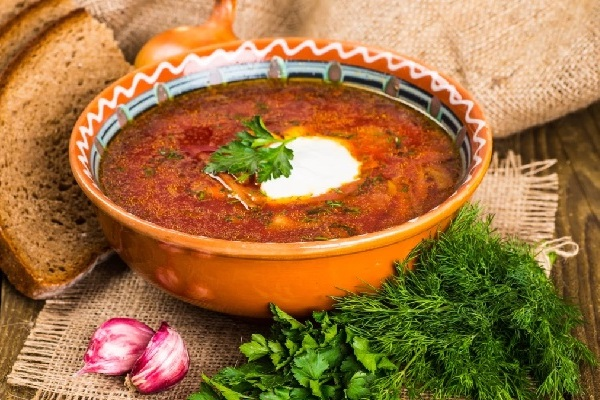 Хороший обед на Кубани не обходится без борща. Будучи исконно русским блюдом, он, видоизменяясь под влиянием многих южных национальных культур, приобрёл здесь вторую жизнь. Интересно, что не существует классического рецепта. У каждой хозяйки или повара ресторана он свой. Как говорится, «в каждой хате свой борщ». Но тем не менее существуют определенные правила приготовления, характерный набор продуктов и заправок, а также способы их подготовки. Кубанские борщи бывают и с говядиной на кости, и постные, и с фасолью, и с рыбой, и со щавелем. Свёкла используется борщевая, а не винегретная, и издревле клали её не для цвета, а для вкуса. А цвет и из помидоров хорош. Также вкус борща усиливают укроп и петрушка. В кубанский борщ, если он с мясом, не кладут зажарку. Сырой лук затолачивают старым салом с солью. Помидоры добавляют квашеные, паста-томат не нужна. Квасили помидоры в бочках на всю зиму. А если весной помидоры заканчивались, отваривали неспелую алычу – и в борщ её. У борща с фасолью и