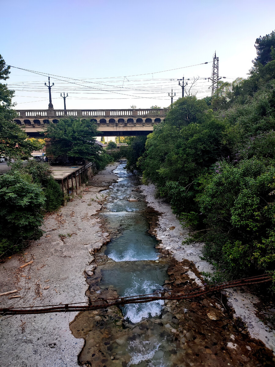 Отправляемся к следующей заброшке расположенной в Старой Гагре недалеко от площади Гагарина (пл. Нартаа). Это бывшая жд платформа Абаата. Пройти к ней можно: В последнем случае перейдя через мостик, будет тропинка вниз и потом ступени вверх к вентиляционной станции, а чуть выше тропинка налево к жд платформе. Открыта станция была в 1943 году и тогда она называлась «Гагры-Курорт». Как раз недалеко от нее была площадь и тот самый заброшенный универмаг «Жоэквара», о котором я писала ранее. После того как в 1950-х годах открыли вокзал в Новой Гагре, ее переименовали в Церетели. И она стала остановочным пунктом. В 90-х годах она получила новое имя – Абаата, в честь крепости расположенной недалеко от нее. Сейчас она, как и все вокзалы, и жд платформы заброшена. Вокруг все заросло буйной растительностью. Но сама платформа удивительно хорошо сохранилась. Уцелели лестницы, каменные скамьи, навес и фонарные столбы. Её еще возможно восстановить. Поезда здесь проходят не часто, насколько знаю,