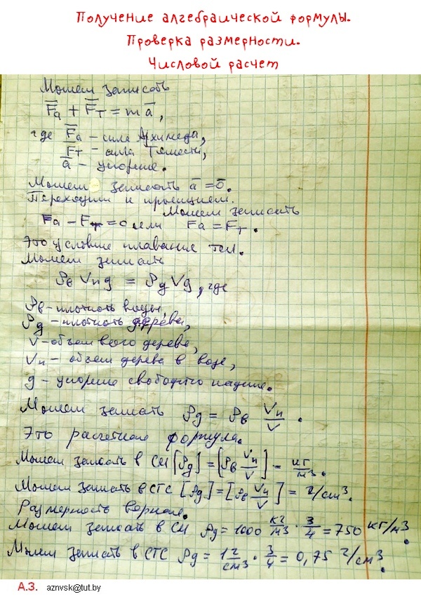 Проверяем выполнение правила размерности в окончательной алгебраической формуле. Числовой ответ получаем в системе СИ и СГС.