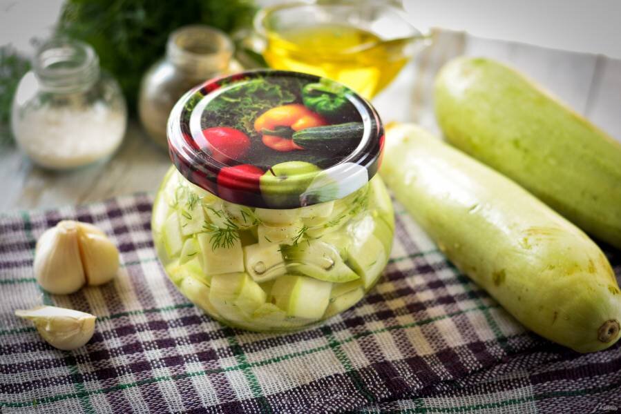 Выкладываем кабачки в банки отделяя получившуюся жидкость, после разливаем маринад по банкам (лучше разделить поровну, если не хватит долить воды, накрыть крышкой и перемешать) Ставим банки с открытой крышкой в кастрюлю, добавляем воды и начинаем стерилизовать банки с кабачками. Ждем пока маринад в банках не начнет кипеть. Как он закипит, стерилизуем 5 минут и выключаем.Можно довить столовую ложку на литровую банку 9% уксуса. Закрываем крышкой и ждем зимы)