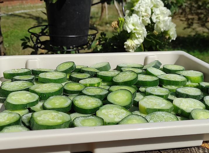 Сезон огурцов подходит к концу. Заготовками заставили весь погреб. Но зимой всегда не хватает свежих овощей со своего огорода. И кажется я нашел решение этой проблемы. Но есть два важных момента. Уже давно ходили мысли — заморозить огурцы. Но как мы знаем, огурцы практически на 90% состоят из воды. И при разморозке огурцы превращаются в кашу. Сейчас расскажу, как этого избежать и как правильно заморозить и разморозить огурцы. Более подробно — как правильно заморозить огурцы, показываю в этом видео: Первым делом нужно отобрать хорошие, не переросшие огурцы. Они должны быть твёрденькие, хрустящие. Промываем огурцы водой и даём обсохнуть. Нарезать огурцы можно как угодно. Тут стоит учитывать, что после разморозки огурцы лучше не резать. Поэтому нарезку для заморозки нужно делать сразу под будущее блюдо. И вот мы подходим первому важному моменту. После нарезки огурцы нужно разложить на плоской поверхности, чтобы они не слипались друг с другом. Не нужно нарезанные огурцы сразу складывать в