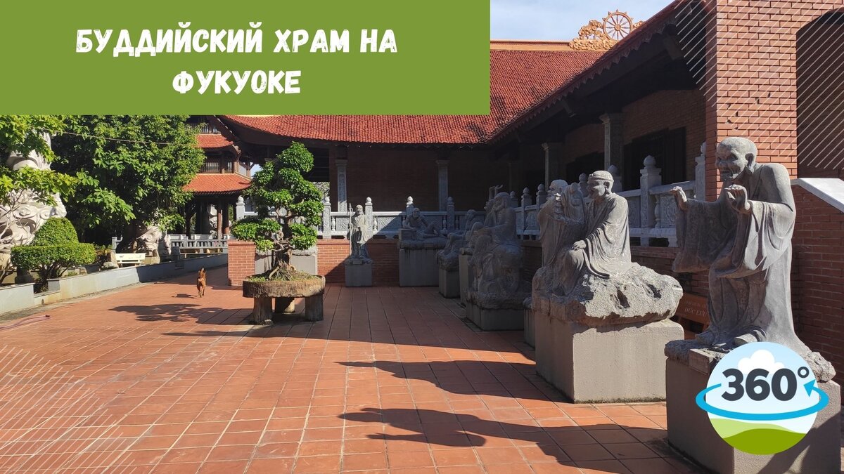 Ho Quoc Temple — буддийский храм на Фукуоке, расположенный на горе с видом на восточное побережье Фукуока. Его можно назвать самым масштабным и самым стоящим на острове. Храм расположен на горе. Поверьте, посетить этот храм нужно не только из-за его духовности и красивых строений, но и из-за сумасшедшего вида. Все это объясняется тем, что месторасположение находится на горе с видом на восточное побережье острова. Храм возведен таким образом, что первые лучи солнца освещают многочисленных Будд, которые стоят на его внушительной территории. Предлагаю вам прогуляться со мной по территории храма в формате виртуальной реальности. Смотреть видео можно как с помощью виртуальных очков, так и с обычного телефона или компьютера при этом сохраняется функция управления камерой. Рекомендуем смотреть видео в приложении или на сайте YouTube, чтобы сохранить возможность управлять поворотом камеры.