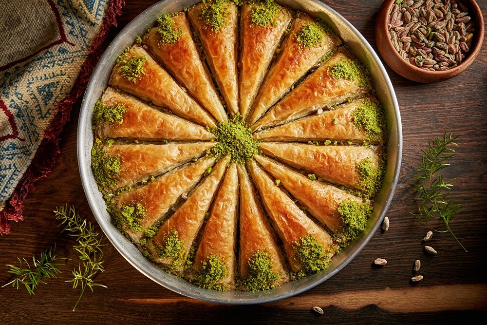 Следующим «пластом» десертной культуры можно назвать персидские традиции. Дело в том, что именно в Персии появляется десерт, основу которого составляет тесто. Тончайшие его слои образуют так называемую баклаву с начинкой из орехов. Знаете, сколько слоев должно было быть в баклаве? Ровно 100. И проверить качество этой сладости можно было так: с полуметровой высоты бросали золотую монету на еще сырую баклаву, если монета пробивала ее и ударялась о поднос, то сладость сделана на совесть. Сегодня 15 слоев считаются высшим пилотажем, а в домашних условиях обычно делают 6-8.