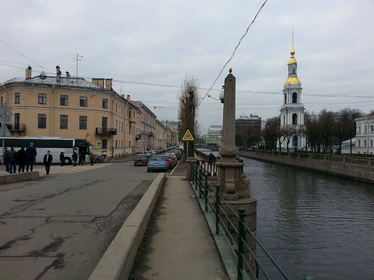 На пересечении Крюкова и Грибоедова каналов есть сразу три моста, я прошел по всем трем. В завершении по «мосту силы» Пикалову я перешел на левую сторону набережной Крюкова канала и по ней пошел на север.