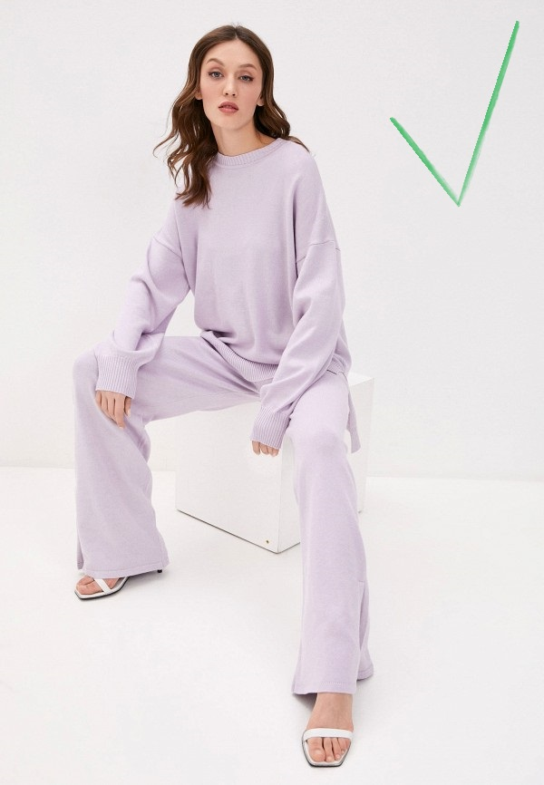 Приближающаяся осень заставляет задуматься о том, во что же мы будем утепляться в ближайшее время. Ранняя осень располагает к прогулкам в вязанных костюмах – пока не наступили настоящие холода, эти костюмы не нужно будет дополнять никакой верхней одеждой. Останется лишь подобрать обувь и аксессуары – и нарядный выход вам обеспечен. В сегодняшней статье рассмотрим практичные модели вязанный костюмов, состоящие из штанов и джемпера. Какие варианты костюмов сейчас представлены в магазинах? Начнем с самого актуального силуэта – оверсайза, когда и штаны, и джемпер очень свободные. Джемпер может быть выполнен в виде толстовки, с капюшоном и карманом впереди, главное чтобы силуэт при этом был достаточно свободный и отсутствовали другие отсылки к спортивному стилю. Вообще боковые полосы на штанах как раз и напоминают нам о спортивном костюме, но в этом исполнении они смотрятся удивительно органично. Ниже – еще один пример удачного исполнения костюма с необычным кроем благодаря свободному силуэ
