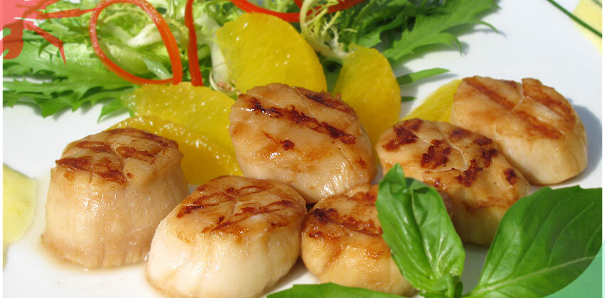 Ингредиенты: Гребешки предварительно размораживаем: перекладываем сначала из морозильной камеры в холодильник, а затем на бумажные полотенца, солим. Разогреваем сковороду-гриль. Обжариваем морские гребешки до золотистой корочки (внутри мясо должно получиться не до конца прожаренное). Листья салата промоем и просушим. Апельсин почистить от кожуры, дольки очистить от кожицы. На тарелку выкладываем морские гребешки, дольки апельсина, листья салата. Вокруг гребешков поливаем апельсиновым соусом, украшаем базиликом и лимоном. Блюдо готово. Приятного аппетита! Источник: https://wildcrab.ru/news?id=1230