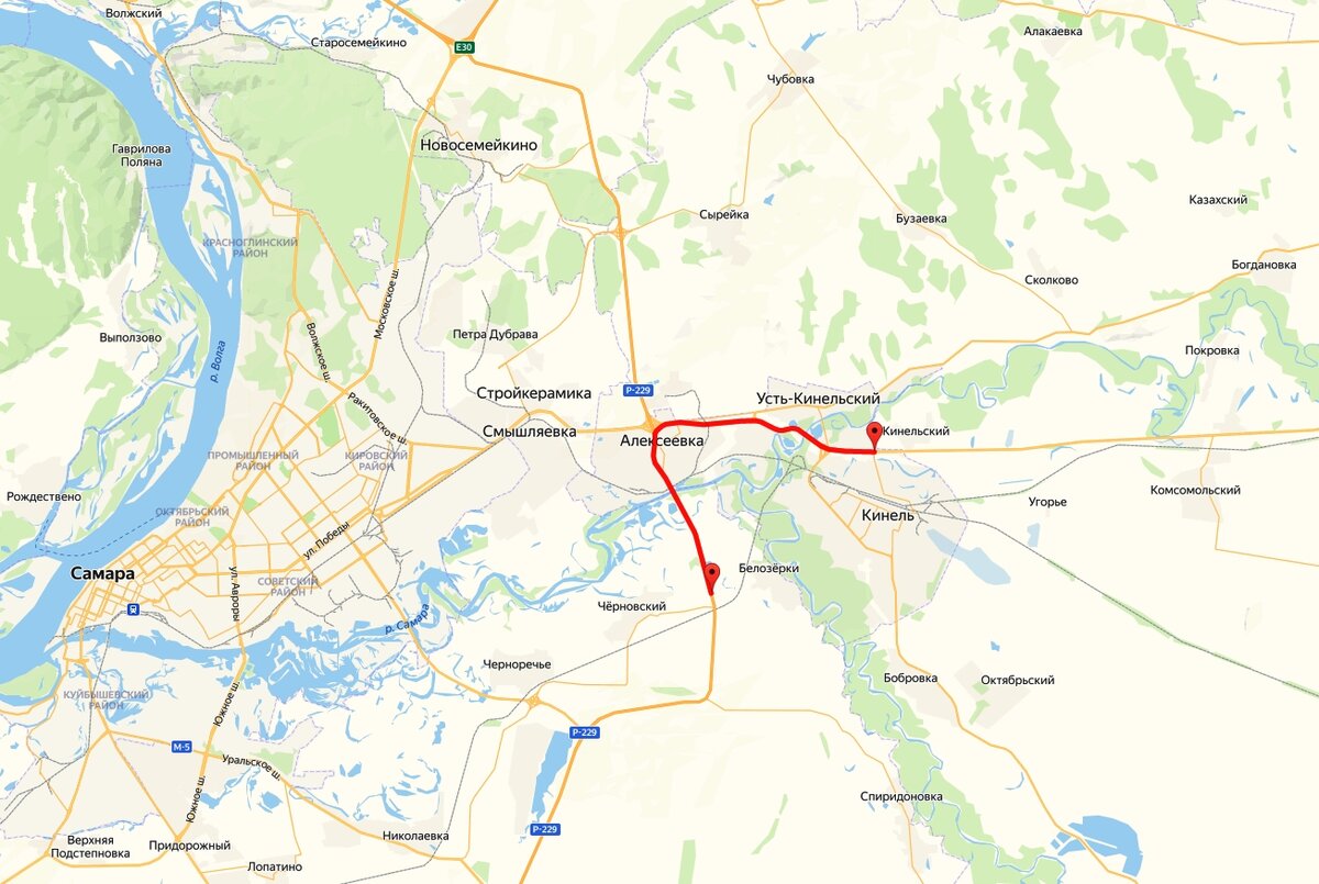 Участок маршрута: Алексеевка – Усть-Кинельский – Кинель.