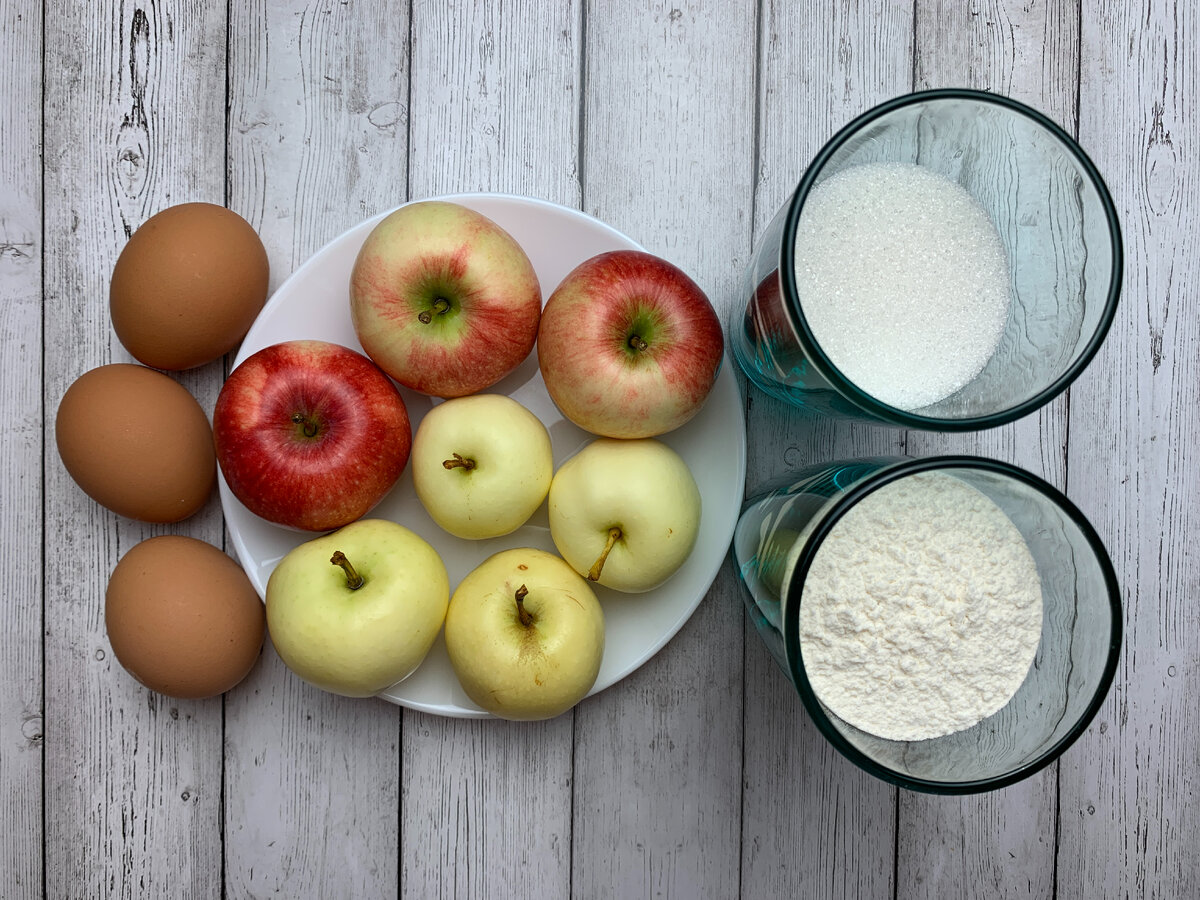 Здравствуйте! Сегодня друзья отдали мне целый пакет яблок и у меня возникла идея приготовить из них очень популярный пирог - Шарлотку. Сейчас этот пирог актуален, как никогда! Классический рецепт шарлотки всего из 4-х ингредиентов. Шарлотка по этому рецепту получается настолько нежная, что больше похожа на яблочный бисквит, конечно же, если правильно приготовить. Кстати, а вы вообще задумывались, почему этот пирог называют "Шарлотка"? Оказывается, существует одна романтическая история про влюблённого повара, который придумал этот яблочный пирог, чтобы удивить свою даму сердца по имени Шарлотта... Для приготовления нам потребуются следующие ингредиенты: Очень важно соблюсти пропорции муки и сахара (у меня 1 стакан = 250 мл.) Также по желанию можете добавить по 1 ч.л. разрыхлителя, ванильного сахара или корицы В отдельную ёмкость разбейте 3 яйца, взбивайте 3-5 мин., постепенно добавляя сахар и увеличивая скорость миксера до того момента, пока масса не станет пышной и светлой. Затем доба