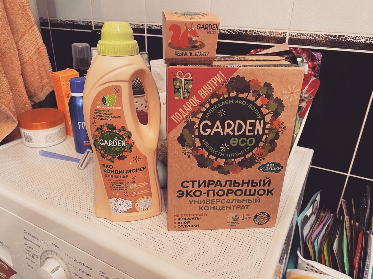 Скажу честно перешла на полностью экологичные и натуральные средства для стирки белья! Пропали аллергические реакции, бросательное белье и одежда стали мягче, а цвет не тускнеет, белое не сереет! Последняя находка, чудо-парочка от Gardeneco бытовая химия без химии! Стиральный «ЭКО-порошок» универсальный концентрат - идёт в картонной упаковке, внутри пакетик со стиральным порошком белого цвета и без запаха - текстура непривычная, легкая, рассыпчатая, не привычная, в отличии от порошка - нет фосфатов, отдушек и хлора, послоняться гипоаллергенный состав - подходит для всего от замачивания до машинной стирки и даже можно чистить сантехнику, попробовала, мне понравилось, но лучше все таки применять к стирке, но у многих есть аллергия на обычную бытовую химию, так что берите на заметку - отлично отстирывает любые ткани и цвета, не портит их, отстирывает постельное белье без предварительной стирки и замачивания - подходит для детского белья Объём 1 кг ЭКО-кондиционер для белья - бутылоч