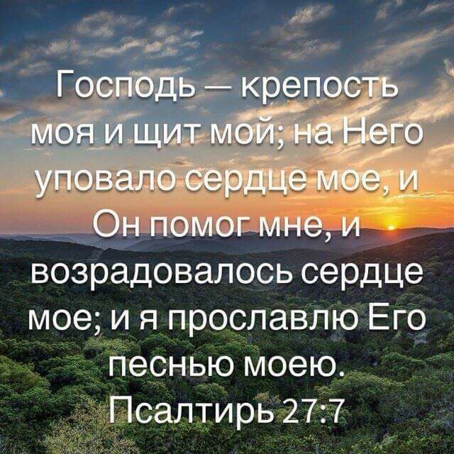«Благословен Господь, ибо Он услышал голос молений моих. Господь - крепость моя и щит мой; на Него уповало сердце мое; и Он помог мне, и возрадовалось сердце мое; и я прославлю Его песнью моею. Господь - крепость народа Своего и спасительная защита помазанника Своего» (ст. 6-8).
