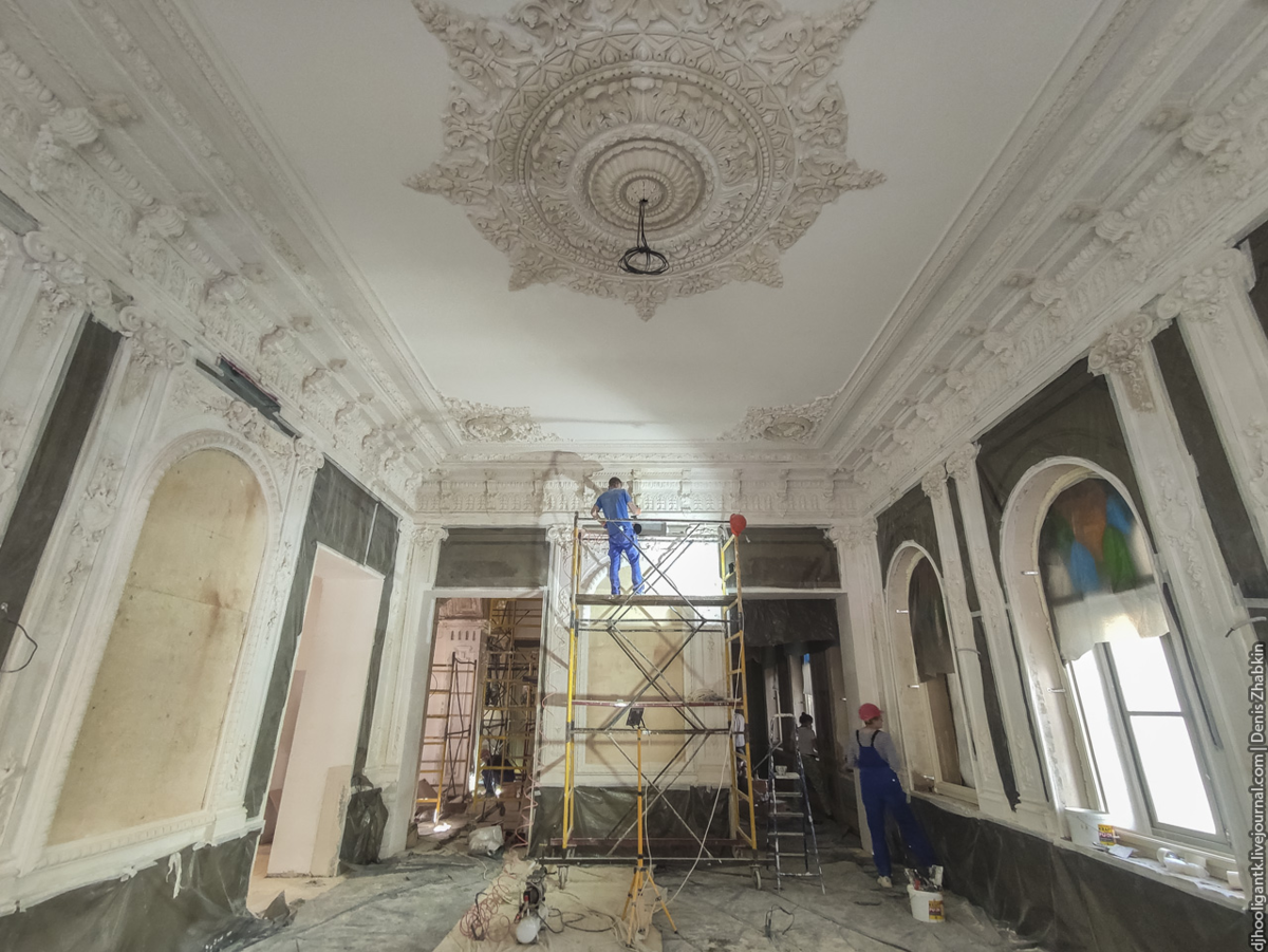 Всего год тому назад я писал о том, что много лет Городская усадьба Скибиневского стоит, разрушается и очередной раз выставлена на продажу (см. пост Шикарная усадьба 19 века, выставленная на продажу). Тогда я подумать не мог, что спустя год она предстанет передо мной совершенно в другом виде. Она не просто обрела хозяина (куплена в сентябре 2020 года), но и получает вторую жизнь. Снаружи и внутри происходит, пожалуй, самая лучшая реставрация в Саратове за все время его существования! Саратова, а не здания, которое, как оказывается, имеет ещё более глубокую историю. Когда сняли сетки с фасада, многие саратовцы вздохнули с облегчением и обрадовались. Уже привычным стала практика реставраций и ремонта исторических зданий, когда после окончания работ появляются лишние этажи, пристройки, многочисленные кондиционеры на фасаде, глухие белые пластиковые окна и железные двери. А что здесь? Кроме того, что никаких надстроек не будет, а исторические элементы, утраченные в советское время будут во