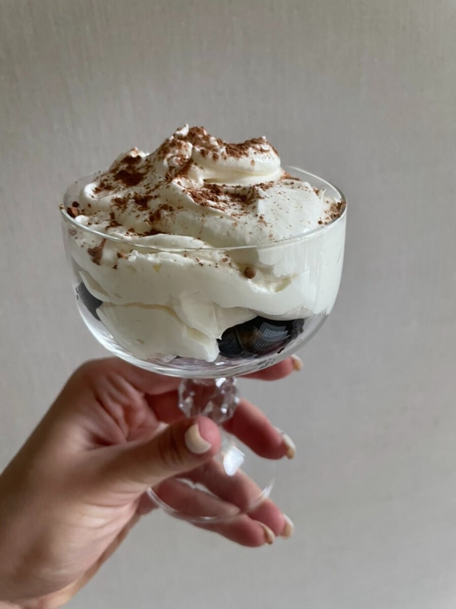 Советский, но очень вкусный десерт! Ингредиенты на 2 порции: • Чернослив без косточек - 20 шт. • Орехи грецкие жаренные - 10-15 шт. • Сметана (жирность не меньше 25%) - 10 ст. ложек (можно взять половину сливок для взбивания) • Сахар - 3 ст. ложки • Ванилин - на кончике ножа • Черный шоколад или какао порошок для украшения Приготовление: Приятного аппетита!