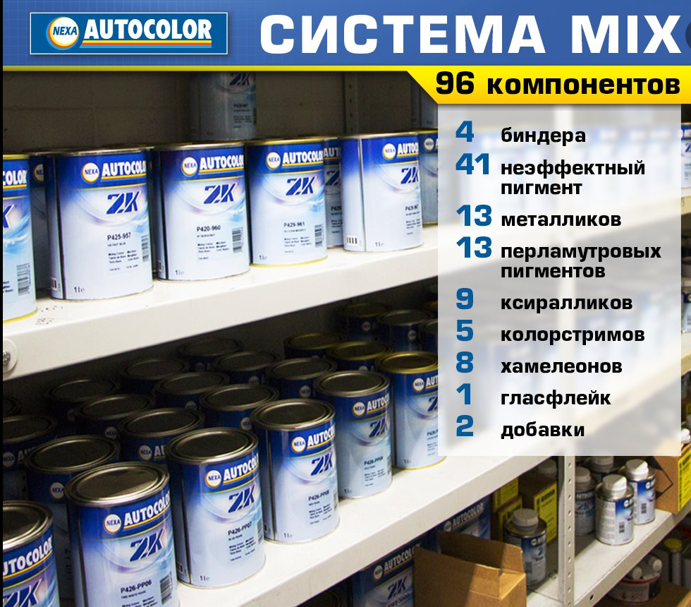 NEXA AUTOCOLOR – уникальная биндерная система, отличительной чертой которой являются универсальность и высокая концентрация компонентов В систему входят пигменты на основе органических растворителей и нейтральные связующие смолы (биндеры 4-х типов), позволяющие создавать несколько десятков тысяч оттенков, а также покрытия разного типа с помощью одного набора из 96 компонентов. Такую систему можно приобрести NEXA AUTOCOLOR® (PPG) -