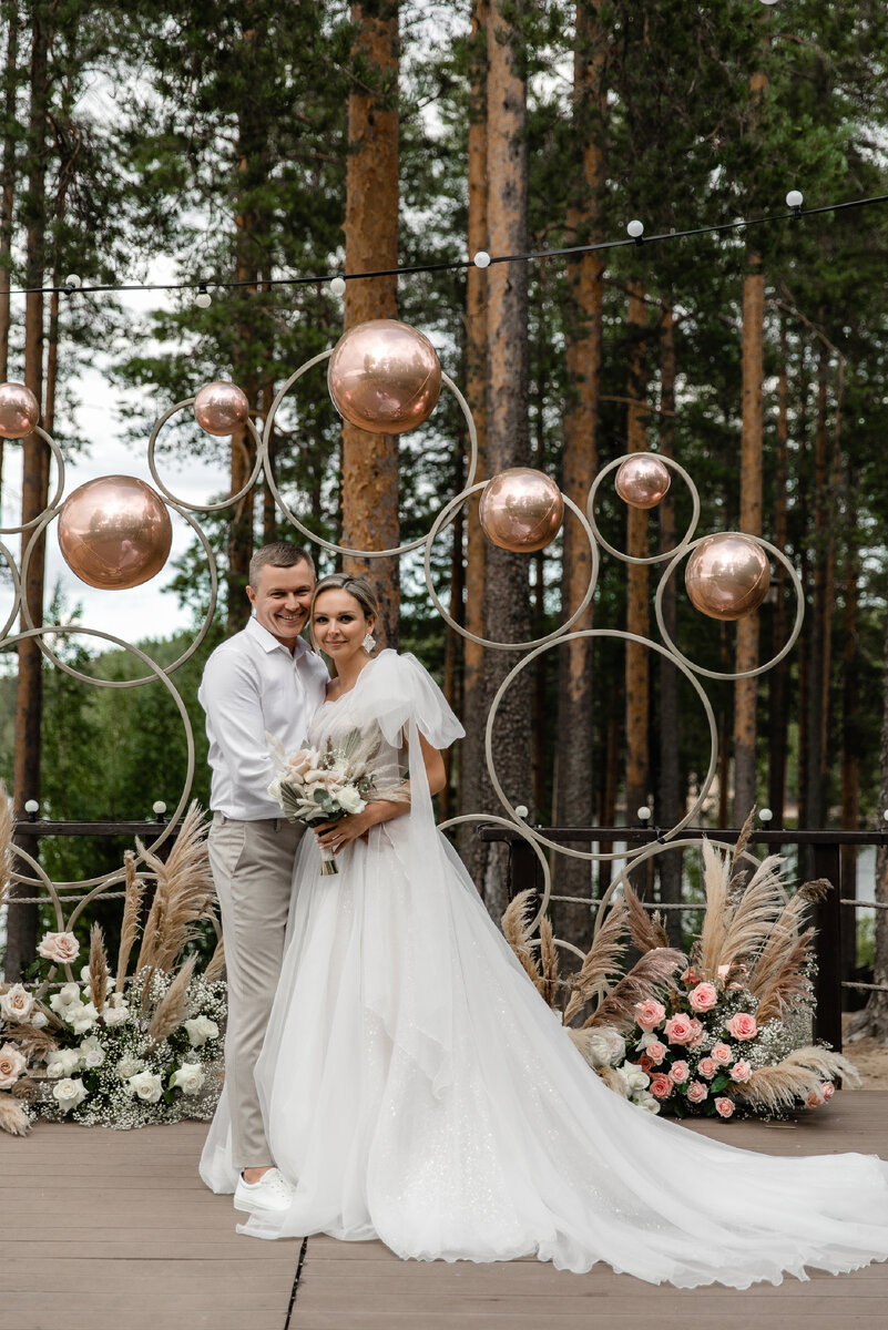 10-ю годовщину свадьбы принято называть розовой или оловянной. Эту дату необходимо отметить пышно, с размахом. В идеале повторить тот самый свадебный день — обновить клятвы и снова собрать вместе самых близких людей. Именно такое решение приняла основательница свадебного салона Jully Bride Юлия Заборская и вместе с мужем создала волшебный праздник для своих друзей. Шикарная локация на берегу посреди леса, живая музыка, два свадебных платья, ведущий, неудержимые танцы, волшебный закат и многое другое... Эта статья вдохновит вас больше праздновать и любить! А также, здесь вы найдете много полезных идей и лайфхаков для своей свадьбы или годовщины. Утро жениха и невесты Этот день Юля и Олег начали с фотосессий и видеосъемок. Пока гости собираются в живописной сосновой локации на берегу, ведущий рассказывает программу дня, а бармены наливают коктейли — наши герои заканчивают свою лесную фотопрогулку и наряжаются в свадебные образы. 1.Возвращаем мгновения прошлого Многое жених и не