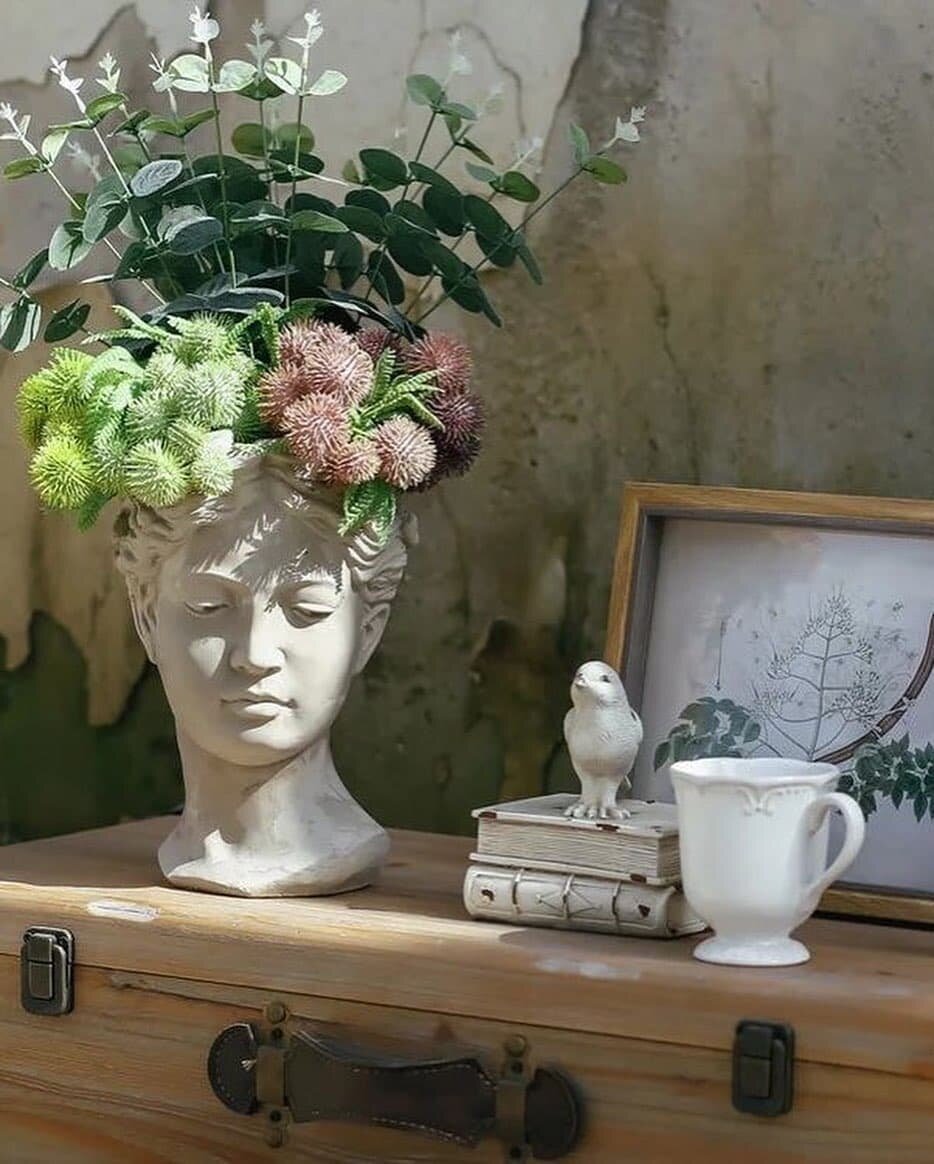 На роль стильного и экологичного декора претендует не только лепнина. Картины и скульптуры в последние десятилетия перекочевали в наши дома и заняли места на полках и в сердцах. Предметы декора помогают создать в комнате богемную атмосферу наслаждения прекрасным. Эти яркие детали вмиг добавляют шарма и характерности облику любой комнаты. Помимо декоративной они могут нести и практическую функцию: быть подставкой под книги, цветы, карандаши, кисти или украшения. Зелень растений отлично гармонирует с этими интерьерными предметами искусства. Такие поделки можно купить во множестве интернет-магазинов, заказать у мастеров или сделать самим из гипса. Для этого нужно купить форму для литься и сам материал для изготовления. Для литья бюстов, подсвечников, кашпо малых форм из гипса рекомендуем присмотреться к линейке «Умный гипс» 😉