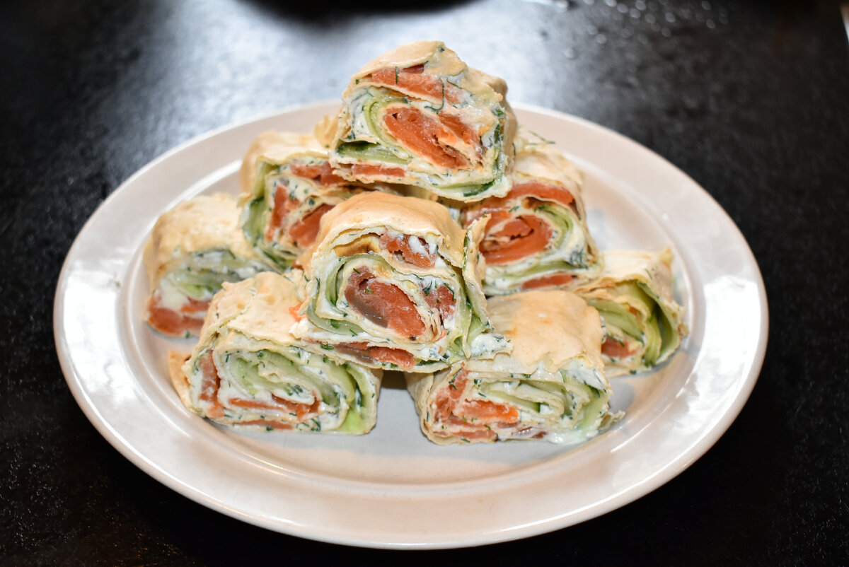 Рецепты простых рулетов из лаваша должны быть в копилке у каждой хозяюшки. Я сама люблю искать интересные и вкусные рецепты (если у Вас есть такие, обязательно делитесь в комментариях, буду рада попробовать Ваши варианты). Сегодня я открыла холодильник и увидела, что красную рыбу которую мы купили в Германии несколько дней назад так и лежит без дела. А муж готовил шаурму и осталось два листа лаваша. Ну не пропадать же добру?! Я тут же решила приготовить вкуснейшие рулеты из лаваша, а в качестве начинки использовать рыбу. Поверьте, это невероятно вкусная закуска, просто пальчики оближешь. Такая закуска подойдет на любой праздничный стол или ужин с бокалом красного вина. Решать Вам, но приготовить нужно обязательно! 👨🍳 Давайте уже готовить! Список продуктов я оставлю в конце статьи, для Вашего удобства. Смазывать лаваш буду сливочным сыром, его понадобиться 200 г. Сыр я переместила из упаковки в глубокую тарелку. Добавляем к нему пучок рубленной зелени, я предпочитаю укроп. Перемешив