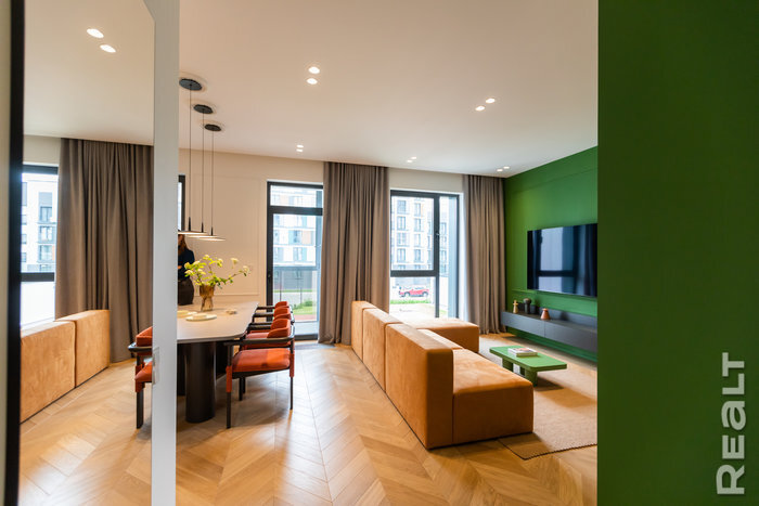В распоряжение студии архитектуры и дизайна VAE design & architecture попала квартира в Новой Боровой площадью 113,76 квадратных метров. Она имеет уникальную планировку: две лоджии, два санузла с душевой и отдельной ванной комнатой. Дизайнерский проект должен решить задачи большой семьи, где растут трое детей. В основном заказчики живут за городом, а квартира скорее нужна детям, которые с сентября пойдут в местную школу и сад. И на тот случай, если у них будут кружки, у них будет квартира, где можно сделать уроки, отдохнуть и переночевать под присмотром бабушки. На реализацию проекта ушло больше года. Посмотрите, что получилось в итоге. — Если сравнивать визуализацию проекта с тем, что имеем, то отличий практически нет. А это значит, что реализация прошла удачно, — подытоживает завершение работ арт-директор студии VAE design & architecture Евгений Варкович. — Интерьер квартиры решал несколько задач. Нужно было предусмотреть, чтобы здесь было все самое необходимое для комфортной жизни и