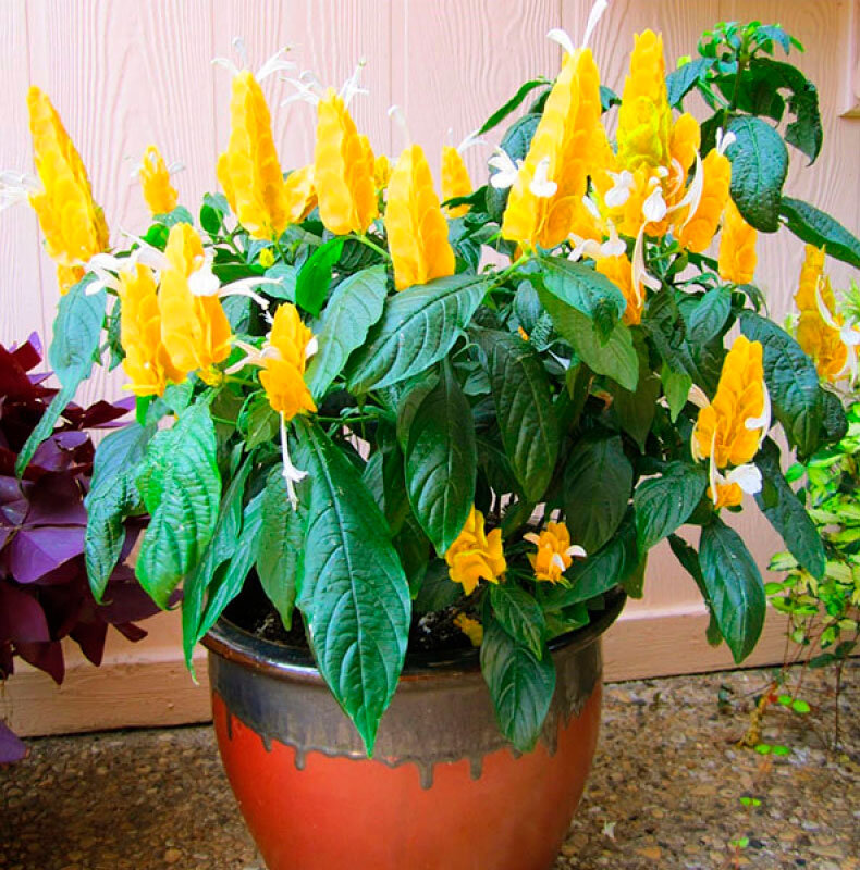 В природных условиях Индии и Южной Америки этот цветок растет как двухметровый кустарник. У нас его выращивают в виде небольшого горшечного растения. Этот экзот хорошо знаком любителям комнатных цветов - пахистахис. Пахистахис ценится за необычные цветки напоминающие кукурузный початок или большой колос. Соцветие насыщенного желтого цвета (бывает красного) с белыми цветками, похожими на креветок. Пахистахис с красными прицветниками встречается немного реже. Цветет пахистахис с ранней весны до поздней осени. Пахистахис можно отнести к неприхотливым растениям, но определенный уход и внимание ему необходим. В комнатных условиях растение может вырасти до одного метра в высоту, но как правило, цветок подвергают ежегодной обрезке, регулируя его рост и форму. Стебель растения быстро древеснеет, листья имеют продолговатую форму и насыщенный зеленый цвет. Длина листьев доходит до 15 см и на них четко видны многочисленные прожилки. Для того, чтобы пахистахис чувствовал себя в вашем доме комфорт